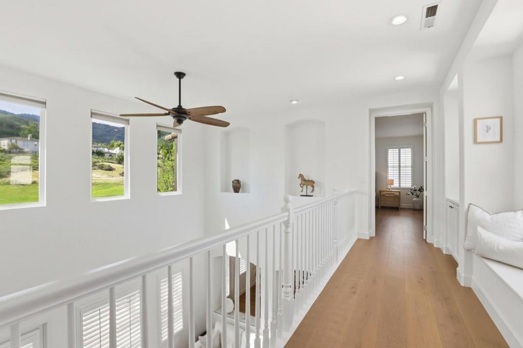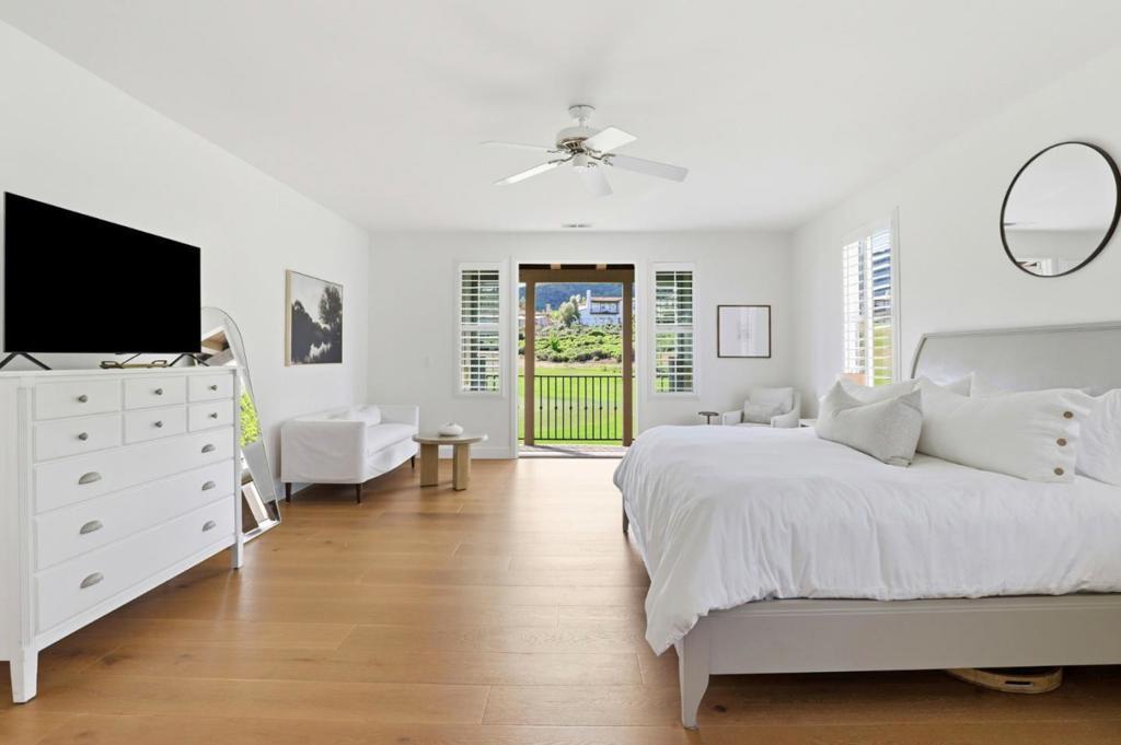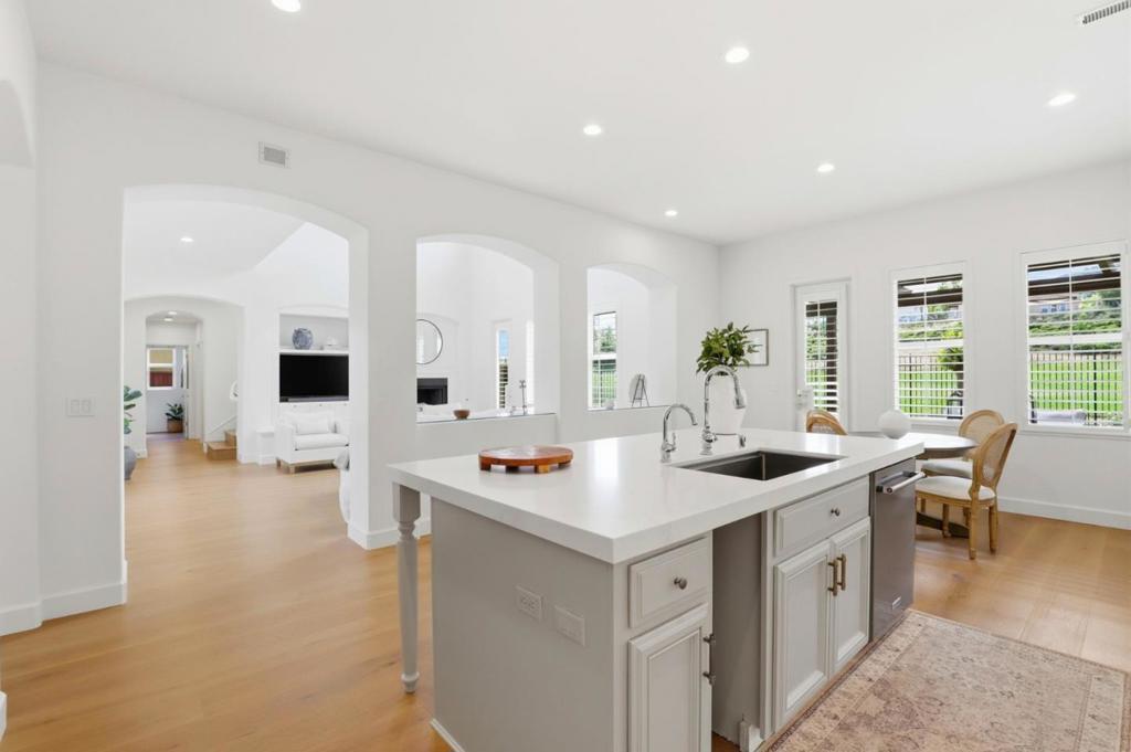 Nestled in the prestigious guard-gated Eagle Ridge Golf Community, this beautifully upgraded home sits on a rare premier lot with no neighbors in front or behind, offering exceptional privacy and sweeping Fairway 11 views. One bedroom suite downstairs, Recent upgrades include new interior paint, wide-plank European Oak engineered hardwood flooring with new baseboards, all-new LED lighting, and updated Decora switches and outlets throughout. The remodeled kitchen features premium quartz countertops, new appliances, updated hardware, and a new sink with modern faucets. Additional improvements include new washer and dryer, added ceiling lights in the library, and refreshed landscaping. Recent enhancements also include a custom pave stone patio, new primary bedroom deck, exterior painting, new water heater, and garage doors. Enjoy a private backyard retreat and resort-style living with golf, pool, tennis, pickleball, clubhouse, parks, and trails minutes to wineries and downtown Gilroy.