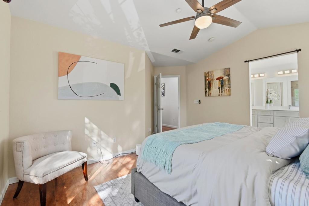 Gorgeous Single Family home with 3 Bedrooms and 2.5 Bath. Open-concept floor plan with vaulted ceilings featuring spacious living and dining areas. Separate family room with fireplace. Upgrades include laminate flooring, Central AC & Heating, and large double-pane windows that offer natural light. Gourmet kitchen boasts quatz counter tops, glass tile backsplash, and stainless steel appliances. The spacious primary bedroom, filled with natural light, features a large walk-in closet and an en-suite bathroom with dual (his and hers) sinks and standing shower. Secondary bedrooms are ideal for kids and guests. Upstairs laundry room adds everyday convenience. Two-car attached garage with drive way, Epoxy flooring and built-in storage cabinets. Low maintenance backyard for relaxation. Multiple guest parking spots available inside the community. Centrally located Opposite Washington High School, close to BART, I-880/I-580, shopping, dining, parks, and major employers. First-time buyers and investors, don't miss this incredible opportunity to own a modern, low-maintenance, move-in ready home.
