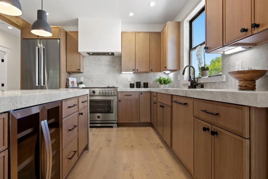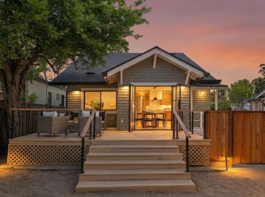 This impeccably remodeled Craftsman residence at 1117 Palm has been taken down to the studs and thoughtfully rebuilt with high-end finishes throughout. Featuring four bedrooms and three bathrooms, the home offers a flexible and functional layout with 2 bedrooms and 1 bathroom upstairs, and 2 bedrooms and 2 bathrooms on the lower level. The spacious ground floor primary suite is a true retreat, complete with a cozy fireplace, a generous walk-in closet, and a spa-inspired bathroom adorned with natural stone finishes. The expansive living and dining areas are filled with natural light and designed for both everyday living and entertaining. The chefs kitchen is beautifully appointed with quartzite countertops, high-end appliances, and refined finishes that carry throughout the home. Step outside to a private backyard with a large deck, perfect for dining, entertaining, and enjoying the California lifestyle. The fully updated garage offers incredible versatility, featuring recessed lighting and French doors that open to the backyard. This space is ideal as a home office or gym, with potential for an ADU (buyer to verify). Major upgrades include new plumbing, electrical, windows, a 50-year presidential roof, new furnace, and air conditioning, offering peace of mind for years to come.