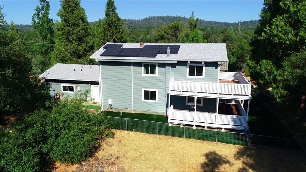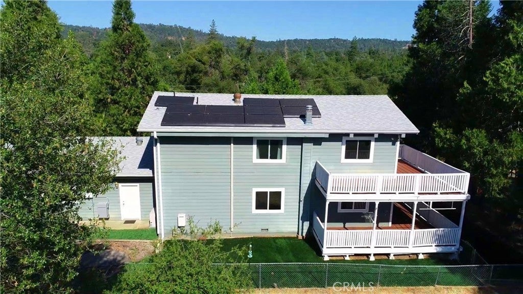 NO MORE ELECTRIC BILLS!; ALL UTILITIES INCLUDED (Well, septic, & electric, as per seller). Looking for a Mountain Home? A home with a Cabin Feel? This 2700 Plus SF home has a lot going for it. Starting with 5 Acres and nice MOUNTAIN VIEWS. Access to those nice views can be seen on the upper level from the redwood deck off the LOFT through the double glass doors. Perfect for enjoying the fresh morning air or simply some much-needed quiet time. The upper level also includes two bedrooms and a FULL BATH. Lofts are viewed as desired space and this one would make a nice office or comfortable lounging area. On the MAIN LEVEL you will find the larger bedroom conveniently located and another FULL BATH featuring tub and separate shower. The nicely appointed kitchen has tile Counter tops, Wood cabinetry and Tile flooring. The Vermont Iron wood stove stands majestically in the Great Room and will do a great job keeping you warm in the Winter. Mitsubishi Mini Splits will come in handy for additional heating as well as air conditioning. Mahogany paneling graces many of the walls on both levels giving the home that cabin feel along with knotty pine ceilings. Off the Great Room you will find a second deck (covered) perfect for enjoying that morning cup of coffee or kicking your feet up with a good book. And if this isn't enough room, how about a 25' X 25' Family room with Pergo flooring for extra space? Just think what you could do with this. Indoor Laundry Room has tons of storage plus a sink. The seller has added many upgrades to the property such as NEW SOLAR, NEW ROOF (Approx. 4 years old) AND GUTTERS, HARDY BACKER FIRE RESISTANCE SIDING and NEW SS APPLIANCES. No dirt roads to contend with here as the driveway is asphalt and no mowing needed with the artificial turf. Front and Back yards are Fenced in, keeping the little ones or your fur babies safe and secure. And if you are so inclined to grow your own veggies or favorite flowers there's a very nice fenced (deer proof) garden area. Lots of good things here and good reasons to schedule your viewing appointment soon so you don't miss out.