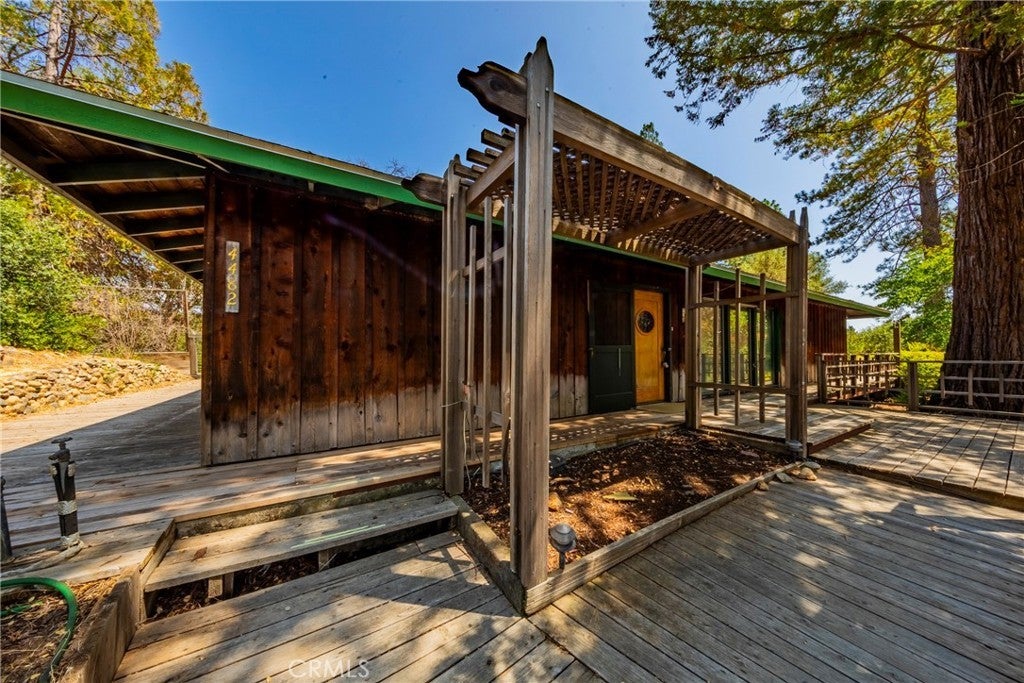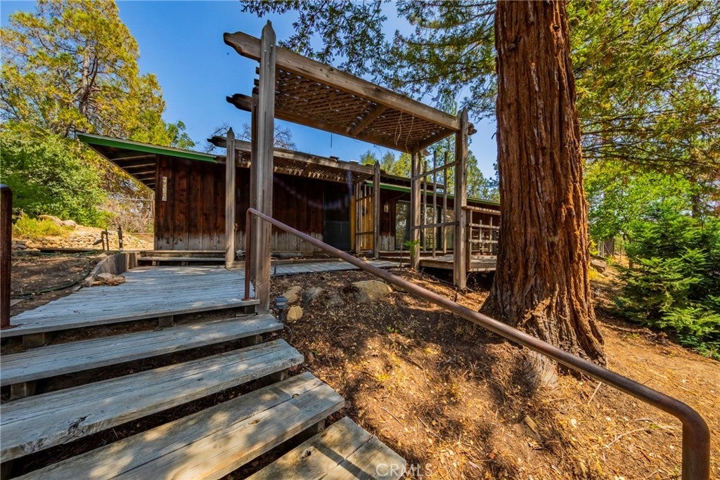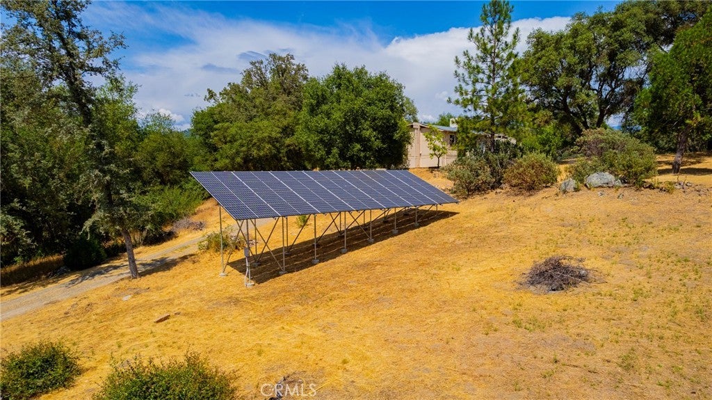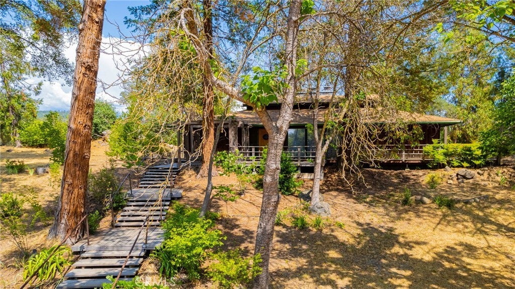 A Timeless Masterpiece Inspired by Nature and Design: Step into a truly one-of-a-kind home, lovingly designed and handcrafted by the original owners with inspiration drawn from the iconic works of Frank Lloyd Wright. This architectural gem beautifully blends natural materials, thoughtful design, and timeless craftsmanship to create a warm and welcoming living experience. The heart of the home is anchored by a striking black slate fireplace, not only a statement feature but a functional divider that eliminates the need for hallways, creating a flowing open-concept layout. Above, the pagoda-style roof and clerestory windows bring in gentle natural light while honoring Asian influences. Massive decorative chains serve as both structural support and striking visual elements, embodying the philosophy that form follows function. Inside, you’ll find a rich variety of authentic wood finishes—from Bruce oak flooring to cherry, ash, walnut, English elm, and clear redwood paneling—each thoughtfully selected and sourced from Georgia Pacific. Acoustic ceiling tiles throughout enhance both the peaceful ambiance and the entertaining potential of the home. Designed in the late 1960s, this home features an ingenious passive cooling system, eliminating the need for air conditioning. Open the screened doors and windows at night to draw in cool air, then close them by day and let the natural thermal properties of the fireplace and stone keep the home comfortably cool. Car enthusiasts and hobbyists will love the expansive four-car garage in the back, complete with a toolroom, grease pit, and paint booth—a dream workspace. The original garage, once a cozy temporary residence, now serves as a charming and functional extension of the property. Energy efficiency continues with a 10kWh solar system paired w/an automatic backup generator, powerful enough to run the entire home, including the private well. Located in one of Mariposa County’s best water regions, the strong well supports the stunning, lush landscaping lovingly created by original homeowner. Her green thumb is evident in the array of flowering plants, shade trees, and unique species not typically found in the area—made possible by the property's water supply. From the carefully chosen materials to the intentional design and self-sufficient systems, every corner of this home reflects passion, precision, and pride, this is more than a home—it's a legacy.