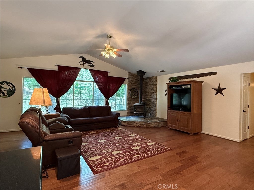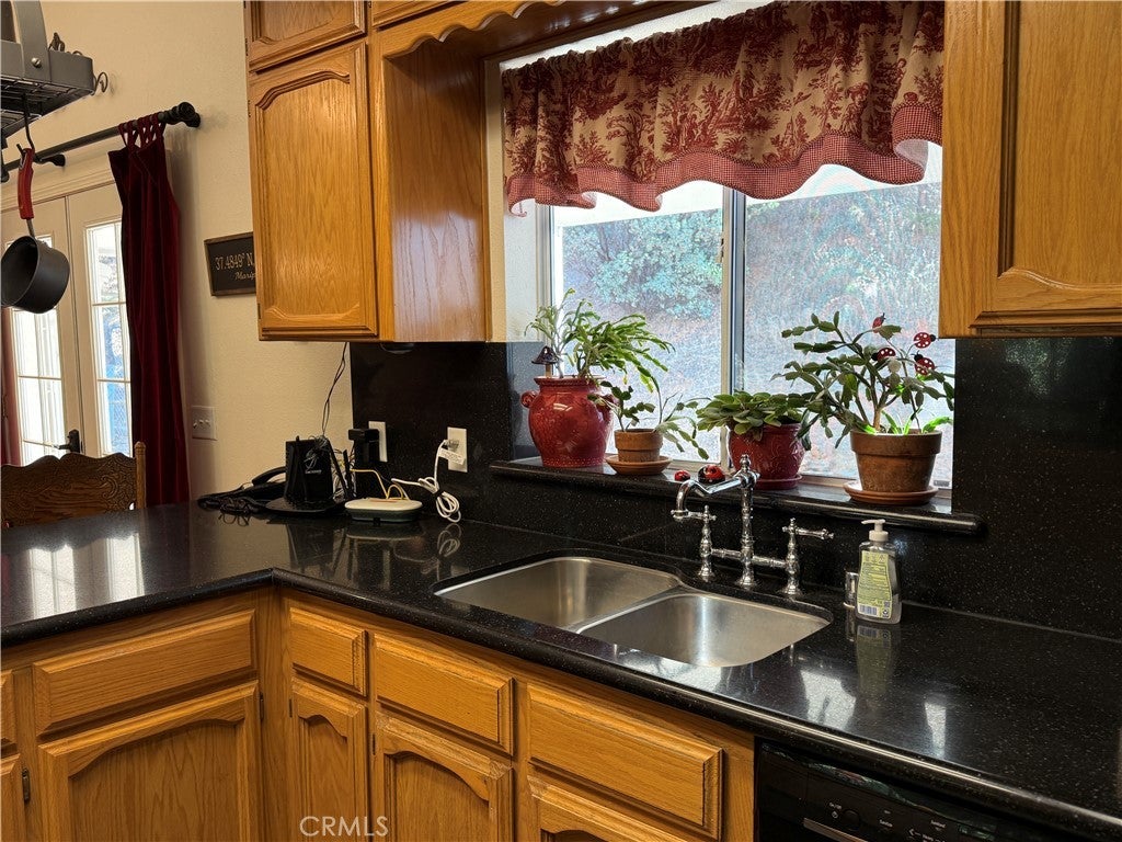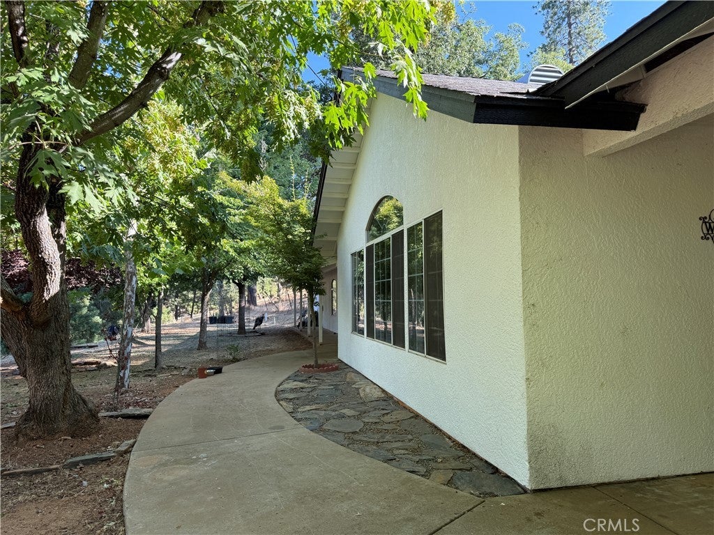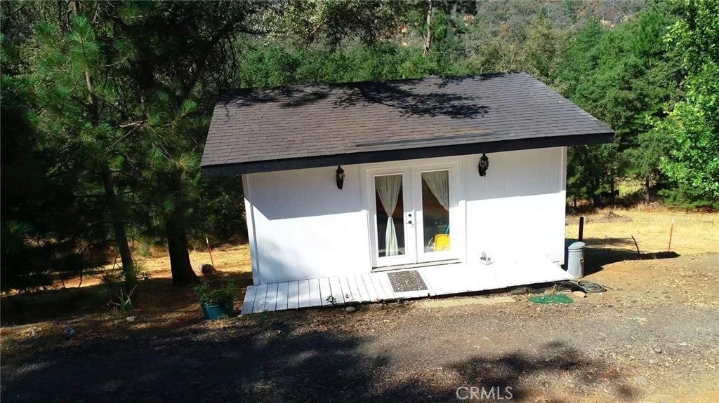 2 Homes on 6 + acres in the Pines, close to Yosemite. Main Home is 2006 large Western Home with 1,906 sq. ft., 2 bedrooms, an office, 3 bathrooms, inside laundry room, an attached garage, owned solar & a backup generator. Home is wonderfully shaded by a Big Leaf Maple & Sycamore trees. Beautiful custom kitchen features black Quartz countertops with matching appliances, custom pot rack, tile flooring, pantry, & propane cookstove. Nice open floorplan with gorgeous hardwood & tile floors. Master bedroom has 2 large walk in closets, 2 bathrooms with tile floors (one Full & one 3/4), & exterior access via French doors; Full bath has large jacuzzi tub & a step in shower. 3/4 bath has a pedestal sink & freestanding clawfoot tub. Additional Dwelling Unit is a 2002 Fleetwood manufactured home on permanent foundation; 960 sq. ft., 3 beds & 2 baths. In addition to all this, there is a 400 sq. ft. Storage/ Shop. For animal lovers, there is a fenced pasture for equines as well as an elaborate cattery built around the exterior of the home in the back & side yard.