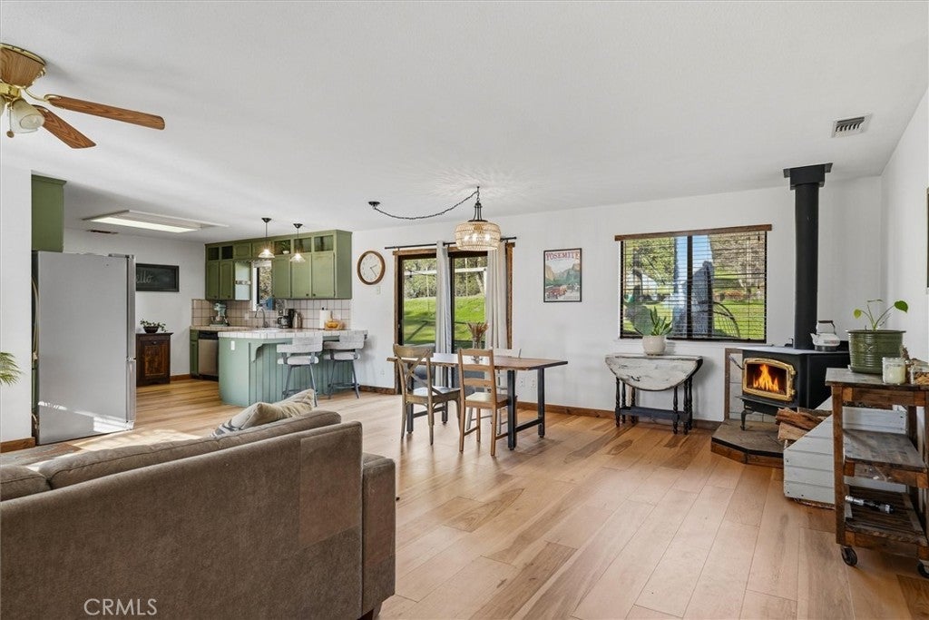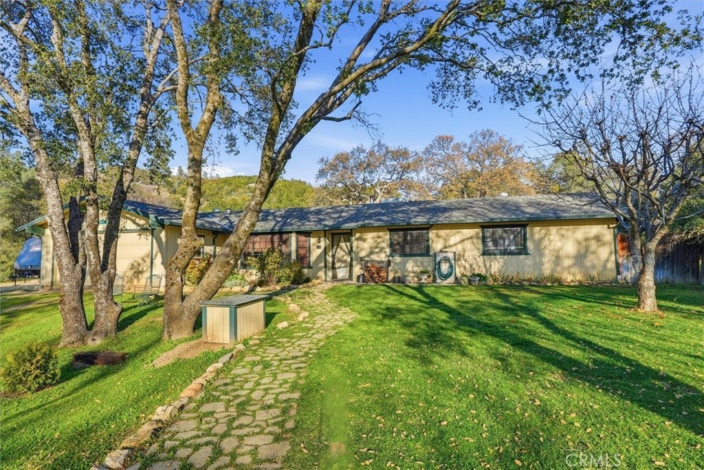 Located in Bronco Hollow Estates, this private and well-maintained property sits on 5.36 usable acres, centrally positioned between Mariposa and Oakhurst and just minutes from Yosemite National Park and area lakes. The landscaped grounds feature roses, flowering plants, and raised garden beds, creating a peaceful, parklike setting. The 1,644 sq ft home offers 3 bedrooms and 2 bathrooms with an open-concept living, dining, and kitchen area. A large bay window provides abundant natural light in the living room, while an additional sitting area with a freestanding wood stove offers a cozy space to enjoy the surrounding views. The property offers generous outdoor space for gardening and enjoyment, including a large fenced backyard. Bronco Hollow Estates does not allow short-term vacation rentals and has a small annual road maintenance fee.