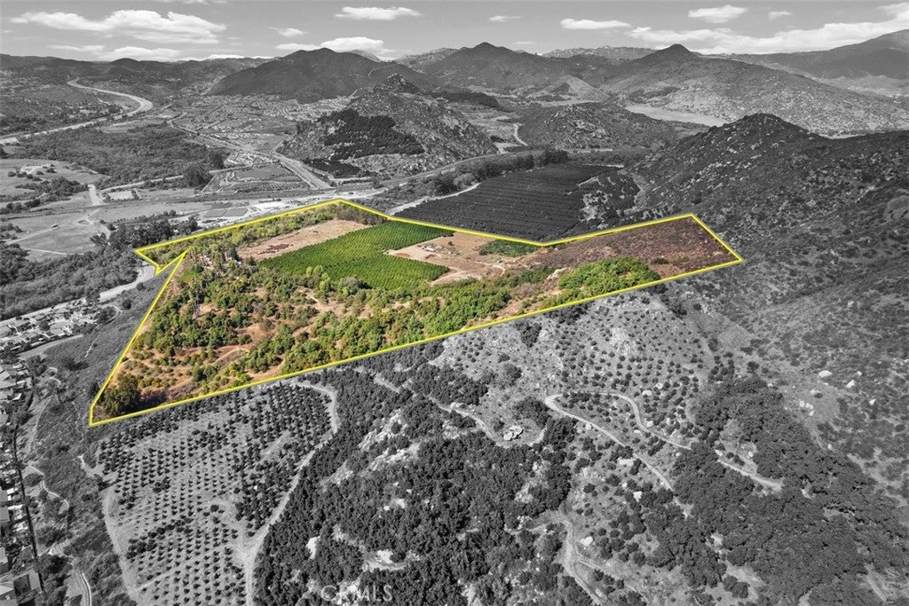Welcome home to this agricultural paradise with a water supply so abundant, it defies expectations. Boasting two high-producing wells and WATER RIGHTS TO THE SAN LUIS REY RIVER providing a virtually limitless flow to sustain farming, equestrian dreams, or other developments. The water infrastructure is truly unmatched with Two 65-foot-deep wells producing up to 1,000 GPM, currently operating at 340 GPM with 65 PSI; One well is powered by a 20HP submersible pump, the other by a diesel-driven line shaft turbine. Water delivery that spans the entire estate with ease and efficiency, including the house with a reverse osmosis system for potable water. The land is as rich and versatile as its water supply. Currently planted with 11 acres of mature orange trees (25+ years old), 20 acres of various producing avocado trees (ranging from 10 to 25+ years) and a vibrant variety of fruit trees, including mandarins, apples, persimmons, and peaches. You could harvest different fruits every month of the Year! Approximately 20 acres of flat, usable terrain present an open canvas for expansion—whether envisioning a world-class equestrian facility, a luxury private estate compound, or a potential subdivision (A70/A72 zoning with 4-acre minimums). Steeped in rich agricultural history, this land has been lovingly maintained by the same family whose legacy helped shape Fallbrook’s renowned citrus and avocado industry. The home is majestically Perched atop a hillside, an exquisitely crafted Spanish-Pueblo style estate capturing the essence of timeless elegance and serene countryside living. Framed by panoramic vistas of lush orchards, rolling valleys, and distant mountains, the residence is a masterclass in architectural thoughtful design. Step inside to discover a warm, inviting interior from hand-laid Saltillo tile and rich wood flooring to plush carpeting in select bedrooms, every detail has been curated for both comfort and views. The expansive layout features 5 generously sized bedrooms, two dedicated offices, and an airy loft. The heart of the home, a sun-drenched kitchen, boasts a picture window that perfectly frames the sprawling orchard views. Two wood burning fireplaces lend warmth and character to the living spaces, creating cozy retreats for every season. Step out to the backyard where a resort-style pool and spa invite year-round relaxation. THIS IS THE PROPERTY YOU HAVE BEEN LOOKING FOR AND DESERVE!