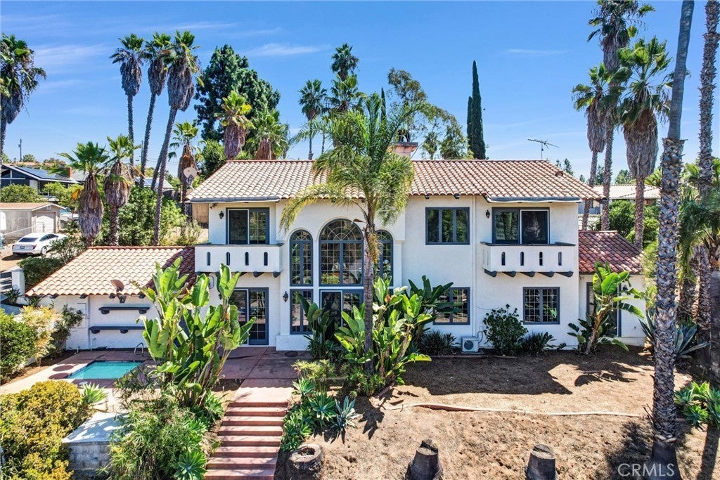 Welcome to this breathtaking two-story custom-built Spanish Mediterranean estate, proudly owned by one family and located in one of Escondido’s most desirable neighborhoods. From the moment you enter, soaring ceilings, a sweeping staircase, and dramatic arched windows capture your attention and set this home apart. The spacious layout features 5 bedrooms, 3 bathrooms, office, den, and a huge game room, along with three balconies that extend the living space outdoors. The upgraded kitchen showcases quartzite countertops, premium appliances, and custom inset cabinetry, while the bathrooms have been tastefully remodeled with timeless finishes. Distinct architectural details, marble-look tile flooring, arched doorways, and a whole-house vacuum system add both character and convenience. A private courtyard with a fountain and multiple patios provide inviting spaces for entertaining or relaxing. Ideally located just minutes from Kit Carson Park, The Vineyard Golf Course, local wineries, North County Mall, San Pasqual High School, and the San Diego Safari Park, this is a rare opportunity to own a grand one-owner estate that blends elegance, function, and location.