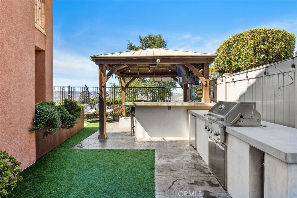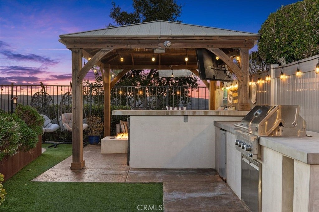 WOW! RATES HAVE DROPPED! PANORAMIC SUNSET VIEWS! SPACIOUS LAYOUT! DOWNSTAIRS ENSUITE! Located in the highly desirable Arrowood Community, this stunning 4-bedroom, 3.5-bath home offers 3,080 sq. ft. of beautifully designed living space with breathtaking westerly hilltop views. The open-concept kitchen features quartz countertops, a large center island with bar seating, stainless steel appliances, and rich dark wood cabinetry, all complemented by engineered hardwood floors downstairs. It flows seamlessly into a spacious family room with a cozy fireplace and a large dining room, perfect for gatherings and entertaining. A first-floor ensuite bedroom provides flexibility for guests or multigenerational living. Upstairs, the spacious primary suite offers a private balcony, walk-in closet, soaking tub, separate shower, and dual vanities. The upper-level also features luxury vinyl plank flooring, two additional well-appointed bedrooms with walk-in closets and a Jack and Jill bathroom, a spacious family room, a dedicated office, and a convenient upstairs laundry room. Step outside to your entertainer’s backyard, featuring artificial grass, a gazebo, fire pit, BBQ grill, and a bar area with refrigerator and sink—all framed by unobstructed panoramic sunset views. The home also includes a 3-car garage, Vinyl Fencing, and Solar panels providing energy efficiency and cost savings. Residents of Arrowood enjoy resort-style amenities, including a Jr. Olympic-sized pool, clubhouse, walking trails, and community parks. Golf enthusiasts will love the nearby Arrowood Golf Course, one of North County’s most scenic and playable courses. Low HOA and served by the award-winning Bonsall School District, with Bonsall West Elementary conveniently located adjacent to the community.