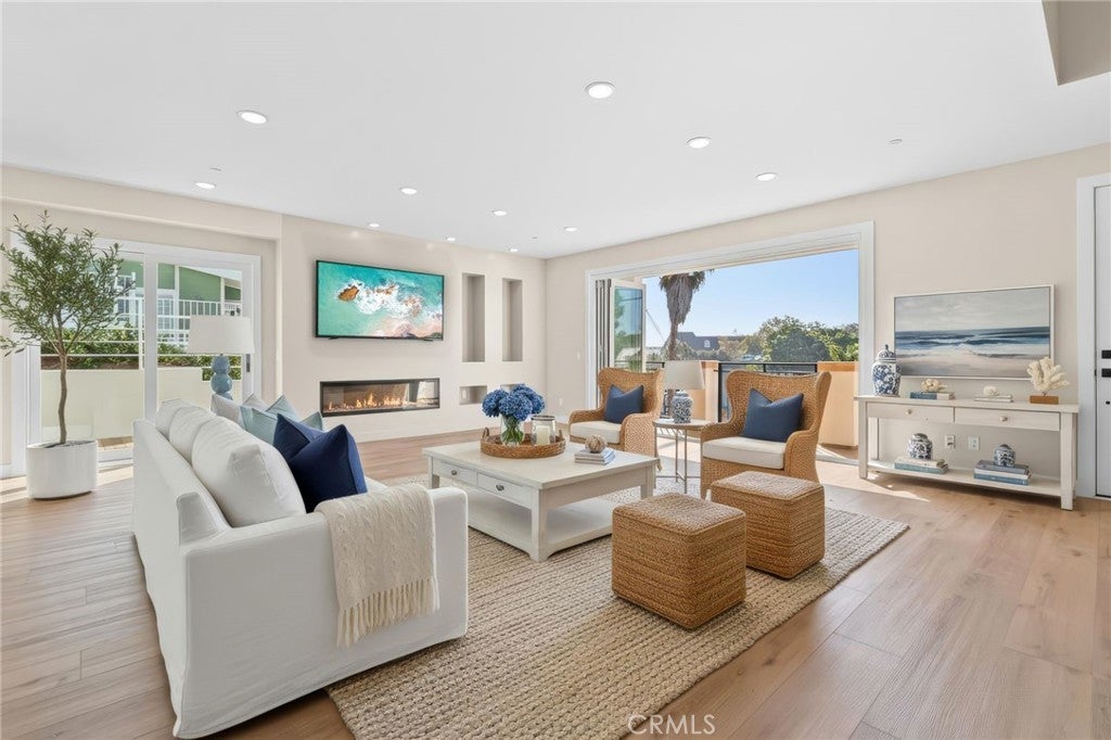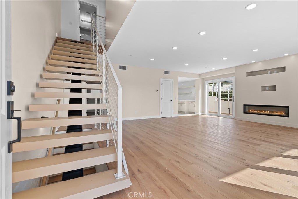 Experience coastal luxury in this never-before-lived-in, newly built modern Spanish-style townhome in Dana Point’s sought-after Lantern District. With 4 bedrooms, 3 bathrooms, and 2,001 sq. ft., it offers effortless walkability to the newly renovated Dana Point Harbor, boutique shopping, and acclaimed dining. Set across three levels, the home showcases refined craftsmanship and contemporary design. A standout 610 sq. ft. subterranean garage—about 50% larger than average—fits two cars plus space for a home gym or enclosed office. The main floor is airy and open, filled with natural light and anchored by an 8' x 12' sliding door that flows to a private patio for easy entertaining. A dramatic floating staircase adds architectural flair, while a main-level bedroom and full bath provide ideal guest or office flexibility. Upstairs, the primary suite is a true retreat with a generous walk-in closet, dual-vanity spa shower, and a built-in bonus nook for reading or working from home. Two additional bedrooms, a full bath, and a convenient washer/dryer round out the top floor, with peekaboo ocean views from select spots. Everything is brand new and thoughtfully appointed, including a 36" range, refrigerator, dishwasher, washer/dryer, electric fireplace, central heating, tankless water heater, and custom window treatments nearing completion. Modern, coastal, and move-in ready—this is Lantern District living at its finest.