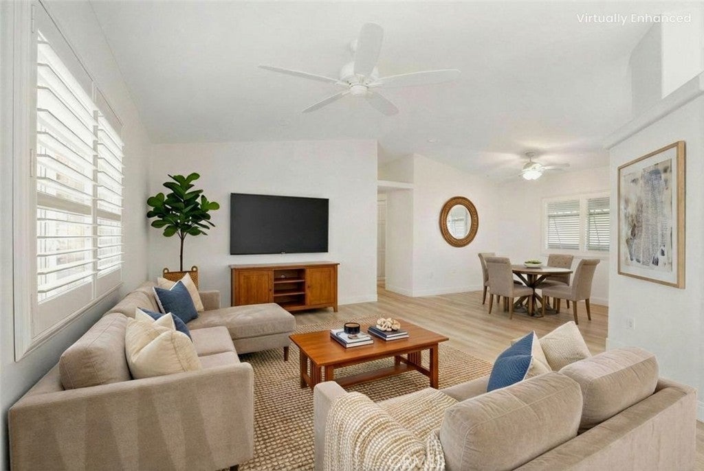 Experience a life of luxury and leisure in Lawrence Welk's Champagne Village, where your new home awaits. Enjoy spectacular panoramic sunsets from the front porch of this recently updated and meticulously maintained home, featuring 2 spacious bedrooms and 2 bathrooms. The home boasts elegant plantation shutters throughout, providing privacy and style, while several skylights illuminate the bright, airy living space. Recent upgrades include a new roof with a 10-year warranty, new luxury vinyl plank floors throughout, a new electric stove, and a new water heater. The Craftsman-style architecture adds a charming touch, while the primary bedroom features a spacious walk-in closet. With a low-maintenance yard and convenient detached storage with built-in shelving, this home is truly move-in ready. Champagne Village offers not only a beautiful home but also a premier 55+ community lifestyle. Enjoy the security and peace of mind that comes with a gate-guarded entry alongside resort-style amenities, including a spacious clubhouse with regular social events, a refreshing pool, and sports facilities for tennis and pickleball. Plus, you’ll have exclusive perks at the Lawrence Welk Resort. With easy freeway access to both San Diego and Riverside Counties, you’ll find the perfect blend of comfort, convenience, and vibrant community living. Don’t miss the chance to make this exceptional home yours—embrace the lifestyle you've always dreamed of in Champagne Village. Contact us today for a viewing!