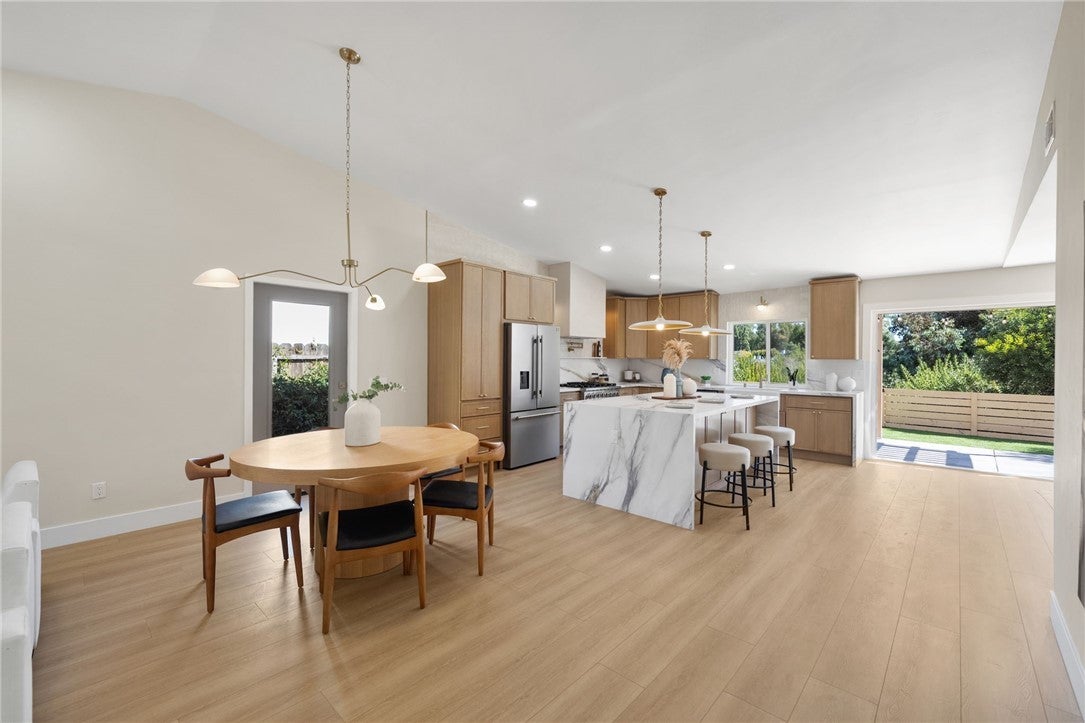 Completely reimagined from the ground up, this stunning single-story Fire Mountain home in Oceanside delivers the modern, move-in-ready lifestyle today's buyers are searching for. Set in one of North County San Diego's most sought-after neighborhoods, this 4-bedroom, 2-bathroom gem sits just minutes from the beach, top-rated schools, and the vibrant energy of downtown Oceanside. Every inch of this home has been thoughtfully updated. A brand-new roof, drought resistant plants, low maintenance turf and fresh exterior give the curb appeal to match the sophisticated interior, while new wood fencing creates privacy and a polished outdoor space. Step inside to wide-plank new flooring that flows seamlessly throughout the open-concept layout, with both a living room and family room space complete with a cozy fireplace— the perfect backdrop for the showstopping kitchen. The heart of the home is the fully redesigned kitchen, featuring a dramatic waterfall quartz island, quartz countertops in warm neutral tones, brand new shaker cabinets with modern brass finishings and even a pot filler faucet help to create a clean modern aesthetic that is equal parts functional and magazine-worthy. Whether entertaining guests or enjoying a quiet morning coffee, this kitchen was designed to impress. With an attached two car garage and single-story layout, this home checks every box for effortless California living especially with the cantina doors in both the primary bedroom and off of the family room giving an easy indoor-outdoor flow to the home. Fire Mountain is known for its hilltop character, tree-lined streets, and a strong sense of community — and this home puts you right in the center of it all. This is North County San Diego remodeled living at its finest.
