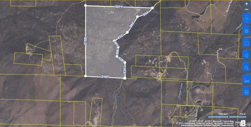 198.94 acres on Trujillo Creek. Could be a great group retreat or 4 home sites. Build your mighty secluded fortress here. Uses could include farming, ranch, groves (there are wells in the area), tactical training, residential or recreational. Two road and utility easements have been recorded. Very private. There are several active gemstone mines nearby: Owner may carry with sufficient down payment.