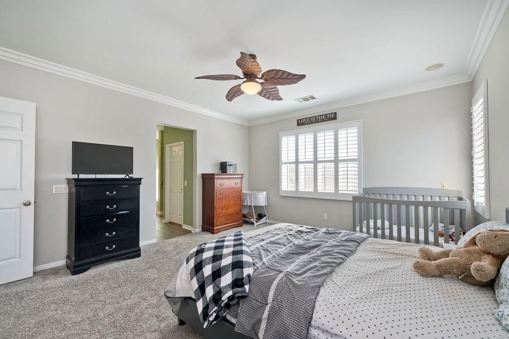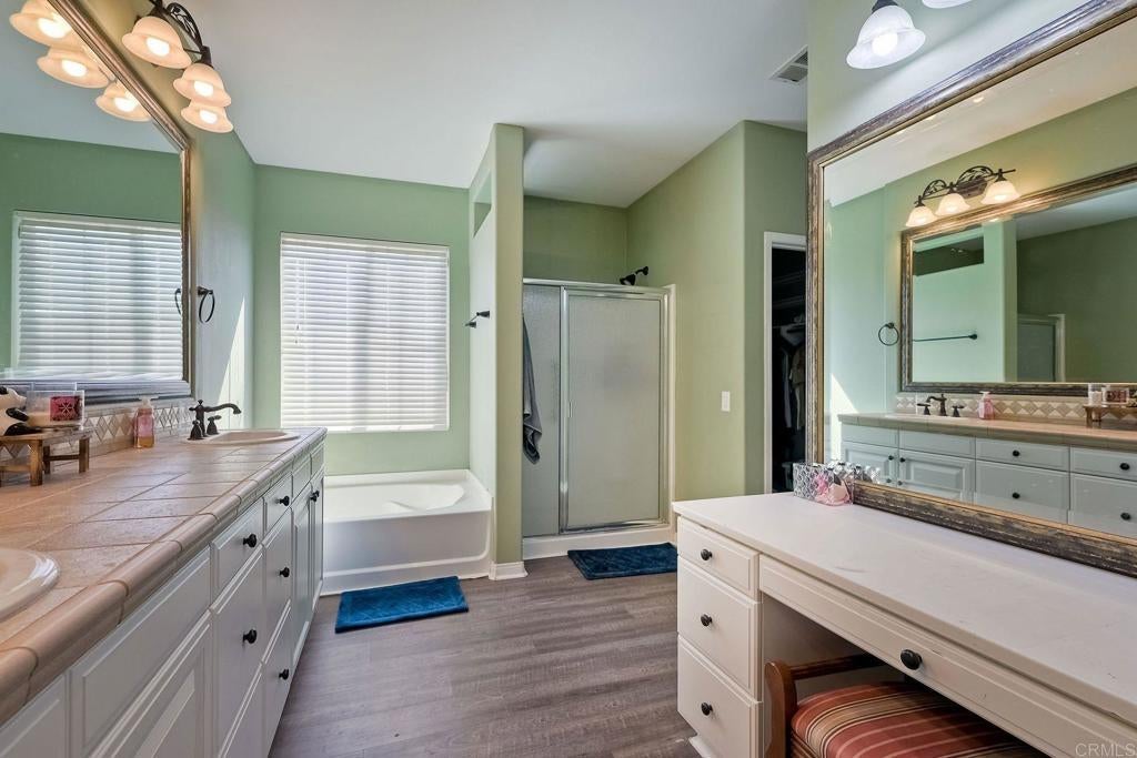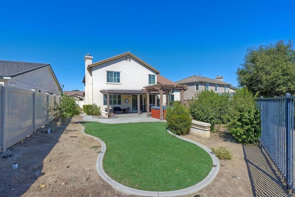 OWNED SOLAR. VIEWS! Discover your dream home in the highly sought-after community of The Farm! This spacious 4 bedroom, 2.5 bathroom home is the perfect gathering spot for friends and family. Step into an expansive great room with soaring ceilings that flows seamlessly into a separate dining area, creating an inviting atmosphere. Downstairs features an open concept family room that has built-in storage and a cozy fire place. The kitchen is equipped with newer appliances and ample cabinet space, ideal for all your culinary adventures. Upstairs, the generously sized primary bedroom includes a spa-like bathroom with a walk-in closet, dual sink vanities, a soaking tub, a separate shower, and an additional vanity area. Additionally, upstairs offers three more well-appointed bedrooms, a full bathroom, and a specially designed workspace that provides flexibility for your needs. Relax in a beautifully landscaped backyard featuring artificial turf, a covered hardscaped patio with a ceiling fan, an above-ground spa, and mature orange trees—all framed by stunning views of the surrounding hills. The home includes a spacious laundry room and a 3-car garage for all your storage needs. The community offers an array of amenities, including 3 pools, 2 spas, hiking trails, picnic areas, playgrounds, a basketball court, soccer and baseball fields, a catch-and-release fishing pond, and RV storage. Convenient access to freeways. Don’t miss out on this incredible opportunity to own a home that perfectly blends comfort, style, and community!