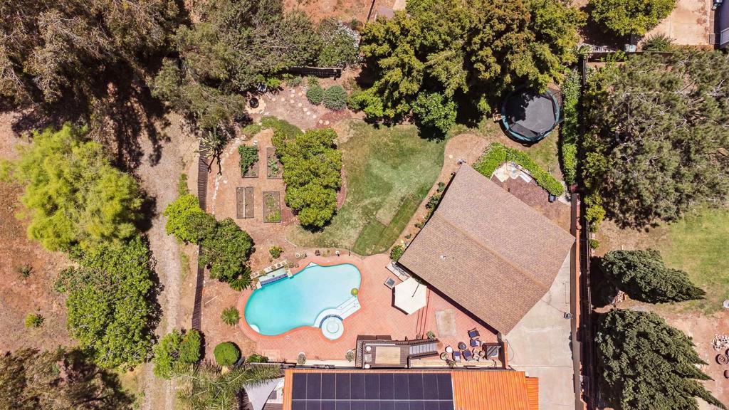 HUGE REDUCTION! of $75k! Welcome to your private oasis in the heart of Mount Helix—a fully gated estate where nature meets modern charm. Tucked away on a flat and usable 14,000 sq ft lot, this beautifully updated home offers the perfect balance of peaceful living and everyday convenience.Step inside to discover a thoughtfully remodeled interior featuring luxury vinyl plank flooring throughout and a gorgeous upgraded kitchen that opens seamlessly into the dining area—ideal for entertaining. The spacious living room and view deck provide the perfect places to relax and take in the lush surroundings.Spread across the first level you’ll find four generously sized bedrooms, including an oversized primary suite with a fully renovated bath and large walk-in closet. Down below a bonus living room and a private lower-level bedroom offer flexibility for a home office, guest suite, or multi-generational living.The outdoor space is a dream come true for both entertainers and homestead enthusiasts alike. Enjoy a sparkling pool, expansive lawn, and bountiful garden featuring mature fruit trees and homegrown produce—including a 45-year-old top producing avocado tree, plus tangerines, pomelos, strawberries, blackberries, cucumbers, squash, and more. A full irrigation system keeps everything thriving year-round.Additional highlights include: *Fully owned solar* covers almost all electricity. Electric vehicle charging station. Detached two-car garage with ample storage, Separate laundry room with laundry chute.Fragrant star jasmine and thoughtfully curated landscaping in front and back.All of this, just minutes from dining, shopping, and top San Diego attractions—giving you the tranquility of rural-style living with the convenience of city access.Don’t miss your opportunity to own a true Mount Helix masterpiece.