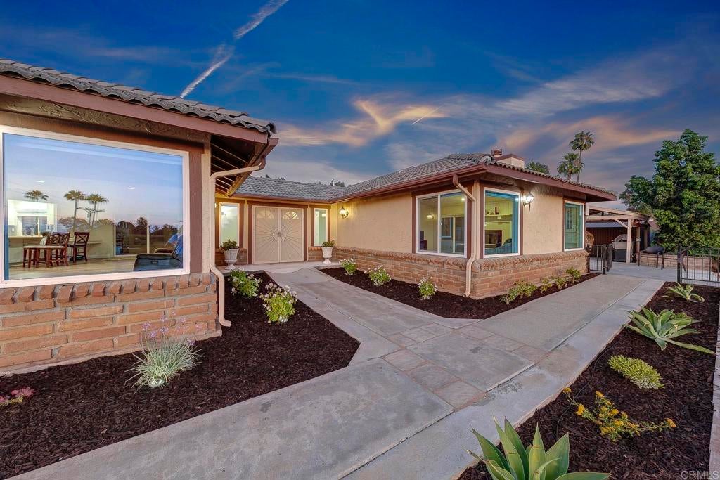 Outstanding Vista propertunity---this one has it ALL! Spacious 1.54 -acre lot, huge & updated single story main home, attached casita with its own kitchenette, 3 oversized RV spots with water & power, plus SPACE to add a pool, animals like horses, goats, & chickens, a resort-style backyard, potential ADUs...the list goes on! Do not miss out on this one that is priced to sell quick in one of Vista's most desirable neighborhoods. Short drive to freeways, revitalized Downtown area, Cal-a-Vie, & the beach in Oceanside! The main home is huge with 5 bedrooms & an office area, large living spaces, tons of light, & a gorgeous updated kitchen with white cabinetry, stainless steel appliances, an oversized eat-at kitchen island with additional storage & walk-in pantry. A W/D was installed in the primary walk-in closet, including hot/cold water lines, drainage, a dryer vent, & a 220V outlet. In addition to the original primary suite with spacious ensuite bath, a second primary suite was created to allow increased flexibility & functionality of the floor plan. Part of the garage was converted into a dedicated office with half bath — ideal for remote or hybrid work. The attached casita with its own kitchenette is perfect for a nanny or property manager. It features its own private entrance, full kitchen (no washer), living room, large bedroom, & full bathroom. The entire house is wired with Cat6 cable, ready for mesh network & camera security system. The driveway & backyard was upgraded with Italian pavers. The spacious outdoor area is hardscaped & incredibly low maintenance. It features a hot tub & an external storage shed. A gate provides privacy & safety for kids & pets. The sellers terraced the 1.5-acre lot using beautiful Italian retaining wall blocks to create an upper terrace for the main house with a flat 0.25-acre area below with a long gravel driveway leading down to the RV sites. Each RV site (total of 3 on property) includes two water hookups, a 32-amp electrical hookup, connected water lines. The exterior laundry close can accommodate up to 2 washers and 2 dryers (gas or electric) & includes a dedicated electrical sub panel. Property includes a 60-panel solar system, a comprehensive French drain system, & a mesh network that covers the entire 1.5-acre property. All water lines on the property were converted to 1-inch lines. The sellers also planted 35 fruit trees! This North County San Diego Dream Propertunity offers massive amounts of value, flexibility for multi-generational living & income potential, not to mention a sizeable lot to create your personalized resort-style oasis in the back hills of Vista. Do not miss this one!