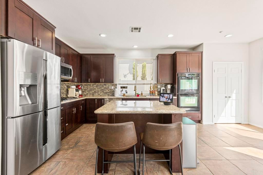 Located in the heart of Vista, this gated community offers the perfect blend of charm and convenience. You’ll be just minutes from outdoor dining, live music venues, shopping, craft breweries, and all the vibrant culture that makes North County so desirable. Inside, you’re greeted by a spacious open floor plan with formal living and dining areas, ideal for entertaining. The island kitchen features stainless steel appliances, granite countertops, a massive walk-in pantry, and a cozy breakfast nook that flows into a generously sized family room with a fireplace. Large picture windows fill the home with natural light, creating a bright and inviting atmosphere throughout. The expansive primary suite offers a true retreat, complete with a huge walk-in closet, an oval soaking tub, a separate walk-in shower, dual sinks, and a linen closet for extra storage. Step into your low-maintenance backyard, an entertainer’s dream with a grand patio, built-in BBQ and outdoor kitchen, dining area, and a freestanding pergola perfect for relaxing or hosting gatherings.