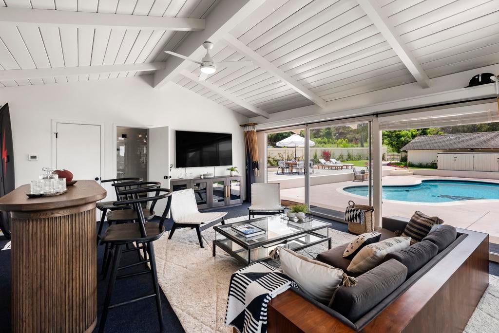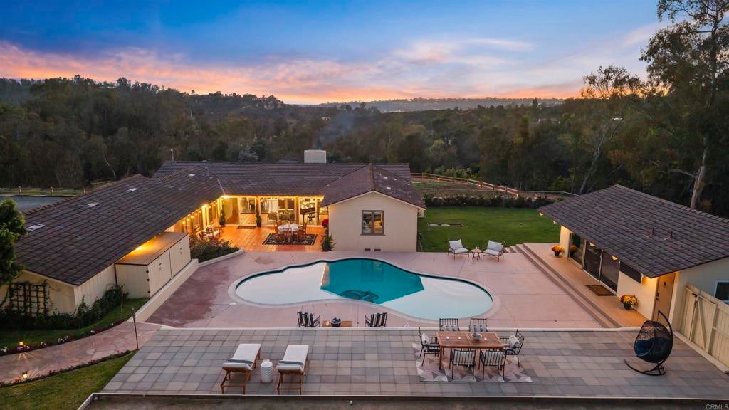 Perched atop 5.26 usable acres in the prestigious West Covenant of Rancho Santa Fe, this beautifully reimagined single-story Modern Ranch-style residence offers timeless design, privacy, and effortless California living. With 4 spacious bedrooms and an open-concept floor plan, the home is bathed in natural light and seamlessly blends indoor and outdoor living. Floor-to-ceiling glass sliders open to an expansive interior courtyard and western-facing meadow, capturing peaceful views and a touch of ocean on the horizon—perfect for golden-hour gatherings or quiet relaxation. The home is thoughtfully designed for entertaining, with a sparkling pool, bocce ball court, and a detached guest casita offering comfort and privacy for visitors. The gourmet kitchen features high-end appliances and sleek finishes, ideal for everyday living or hosting with ease. Located in the award-winning Roger Rowe School District and just minutes from both the historic Village of Rancho Santa Fe and the coast, this westside location is unmatched in convenience and serenity. With direct access to the community’s renowned trail system, 5306 Linea del Cielo is a rare opportunity to own a private, turn-key estate in one of Southern California’s most coveted enclaves.