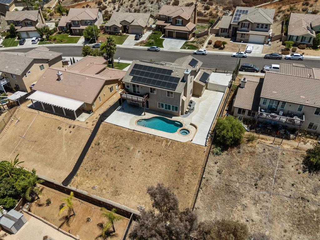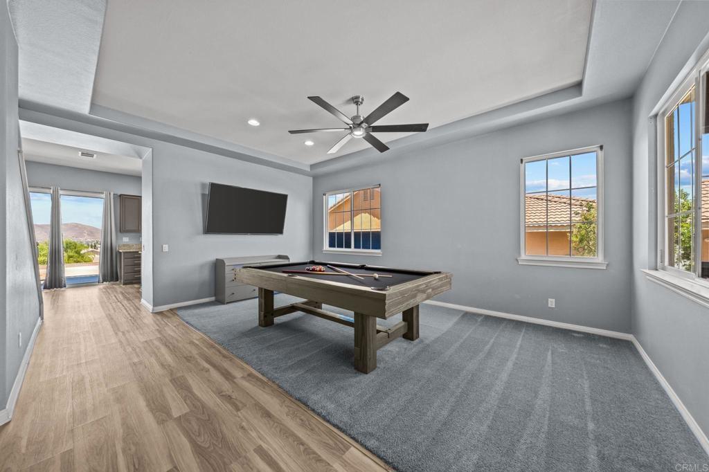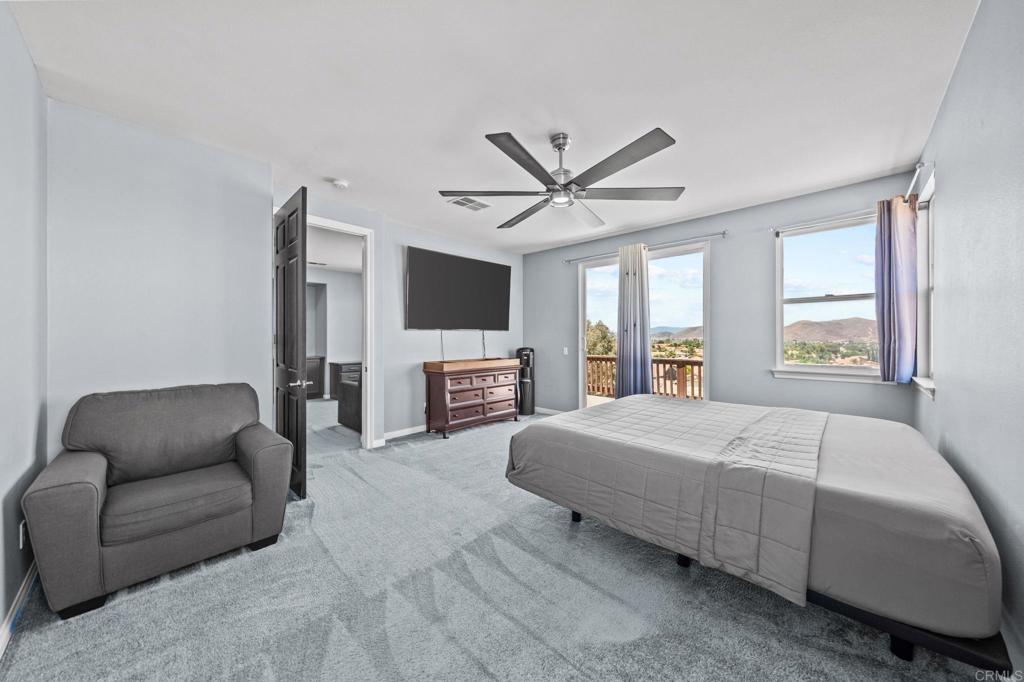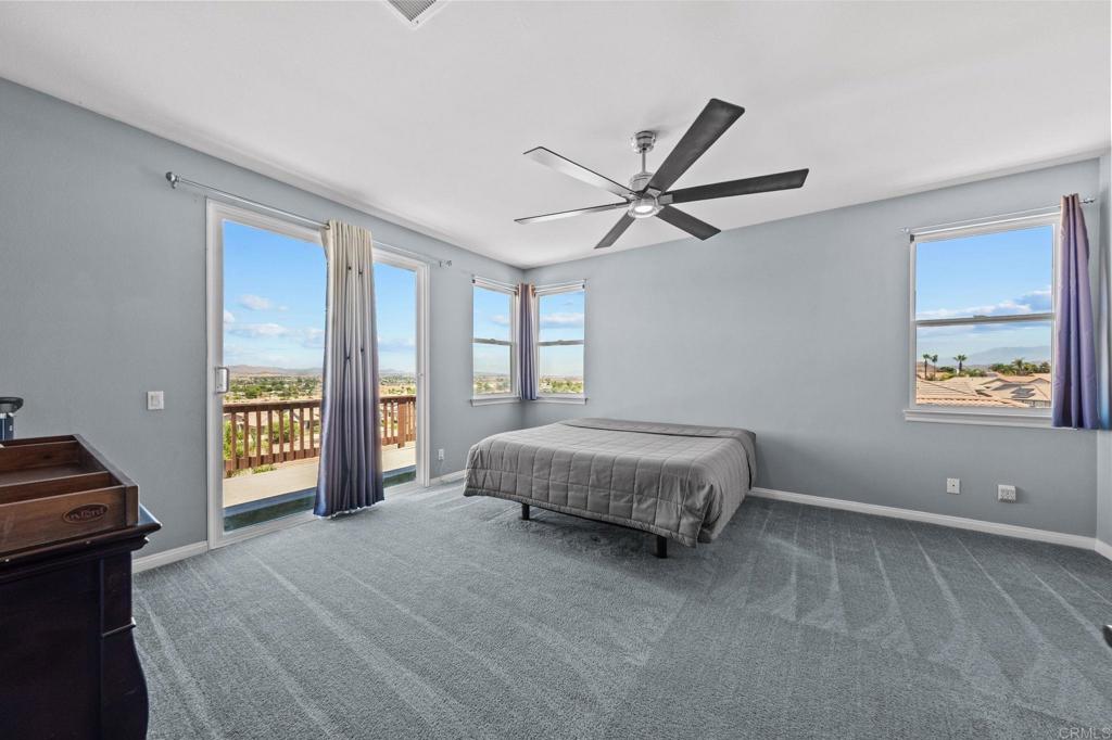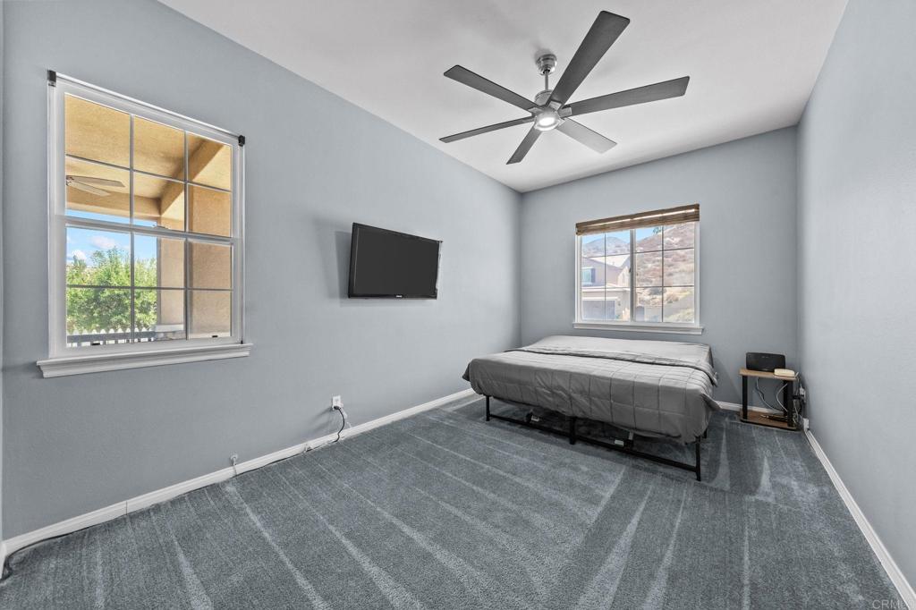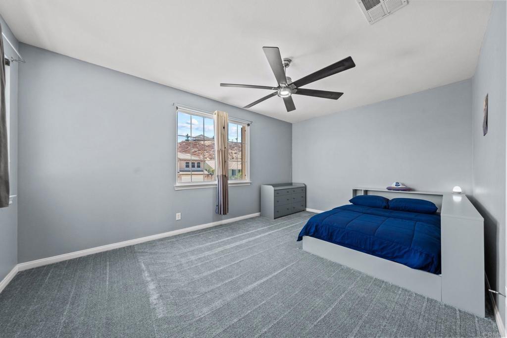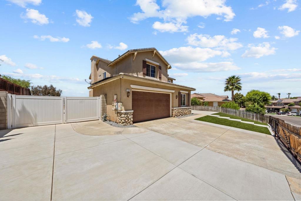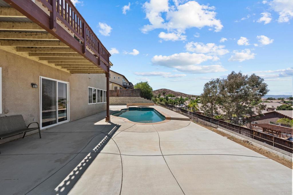 Welcome to your dream home in the heart of Menifee! This spacious 6-bedroom, 3-bath property offers over 3,250 square feet of thoughtfully updated living space on a quarter-acre lot—complete with RV parking and low-maintenance artificial turf in the front yard for effortless curb appeal. Inside, you’ll find a bright, open-concept layout with formal living and dining rooms, a large great room with a fireplace, and a gourmet kitchen featuring granite countertops, a center island, and a walk-in pantry—ideal for hosting or everyday living. A main-floor bedroom and full bath provide flexible options for guests, in-laws, or a home office. Upstairs, the expansive primary suite features a private view deck, walk-in closet, and spa-inspired bath, providing a serene retreat for you. You’ll also find a generous bonus room—perfect as a media room, game room, or additional lounge space for the whole family. The two-car garage boasts a sleek epoxy floor, providing added durability and style. Step outside to your backyard oasis with a sparkling PebbleTec pool and spa, framed by mountain views and room to entertain, relax, or play. Energy-efficient solar panels help keep your electric bills low. Located near top-rated schools, parks, and shopping, this move-in-ready home truly has it all.