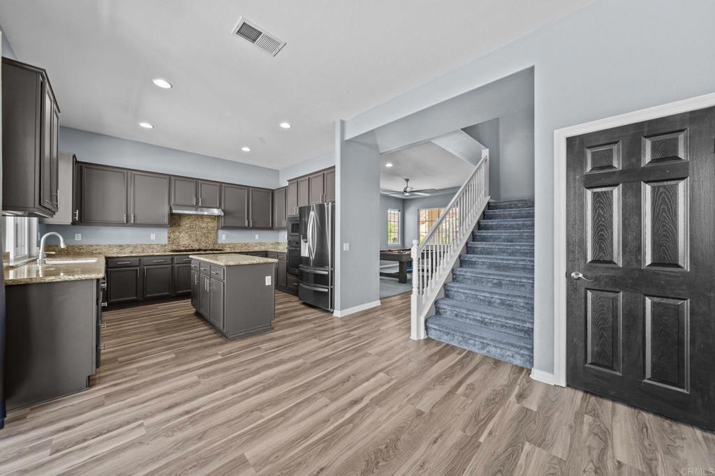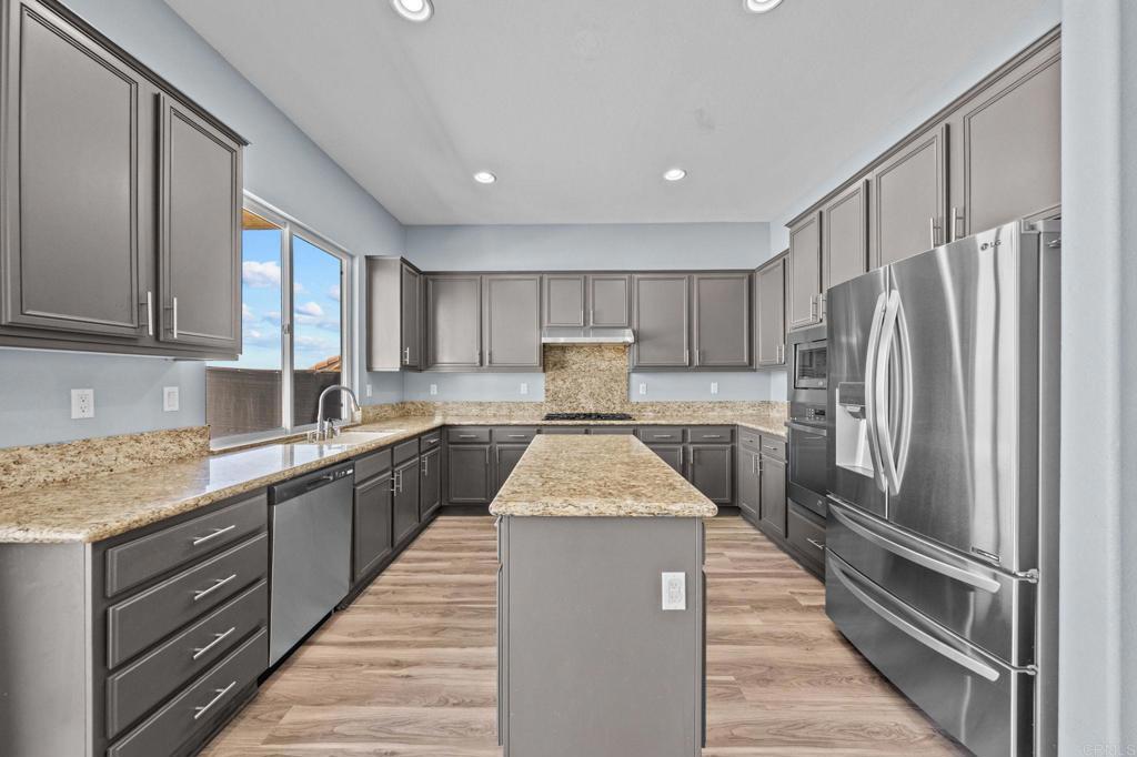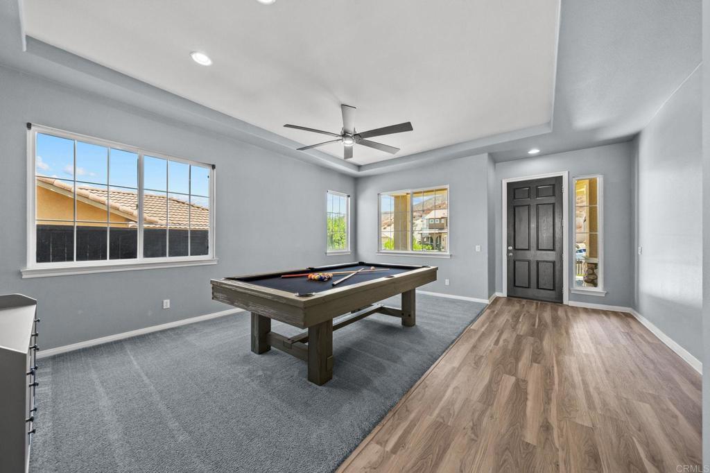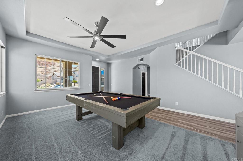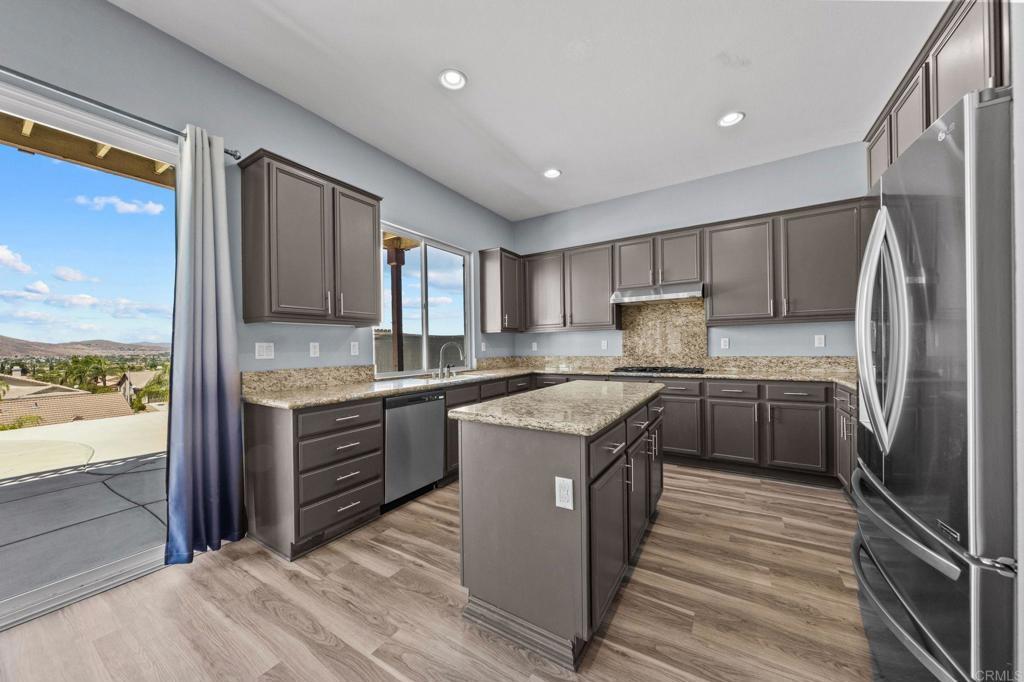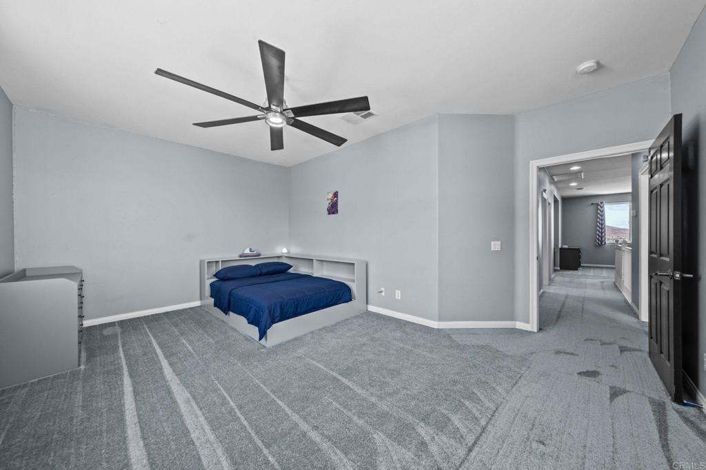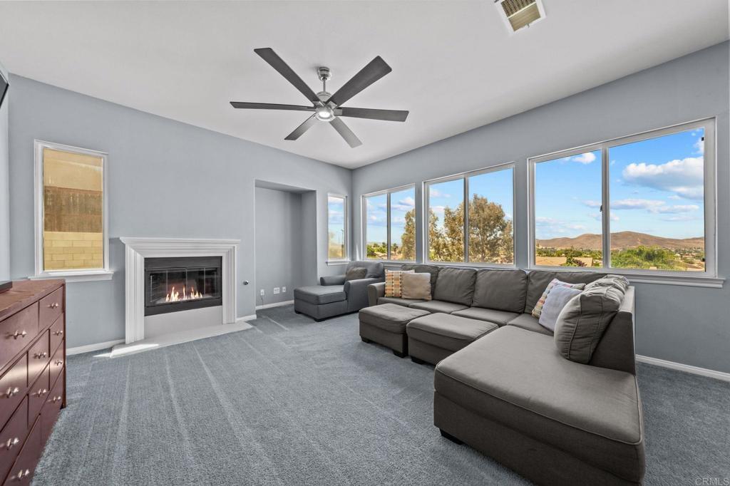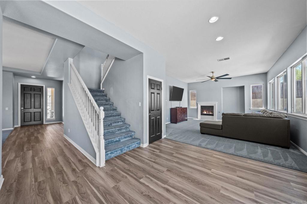 Welcome to your dream home in the heart of Menifee! This spacious 6-bedroom, 3-bath property offers over 3,250 square feet of thoughtfully updated living space on a quarter-acre lot—complete with RV parking and low-maintenance artificial turf in the front yard for effortless curb appeal. Inside, you’ll find a bright, open-concept layout with formal living and dining rooms, a large great room with a fireplace, and a gourmet kitchen featuring granite countertops, a center island, and a walk-in pantry—ideal for hosting or everyday living. A main-floor bedroom and full bath provide flexible options for guests, in-laws, or a home office. Upstairs, the expansive primary suite features a private view deck, walk-in closet, and spa-inspired bath, providing a serene retreat for you. You’ll also find a generous bonus room—perfect as a media room, game room, or additional lounge space for the whole family. The two-car garage boasts a sleek epoxy floor, providing added durability and style. Step outside to your backyard oasis with a sparkling PebbleTec pool and spa, framed by mountain views and room to entertain, relax, or play. Energy-efficient solar panels help keep your electric bills low. Located near top-rated schools, parks, and shopping, this move-in-ready home truly has it all.