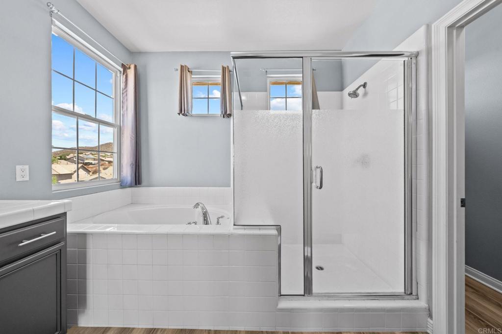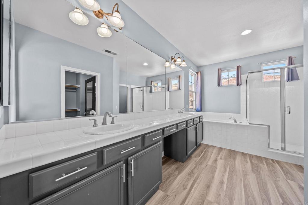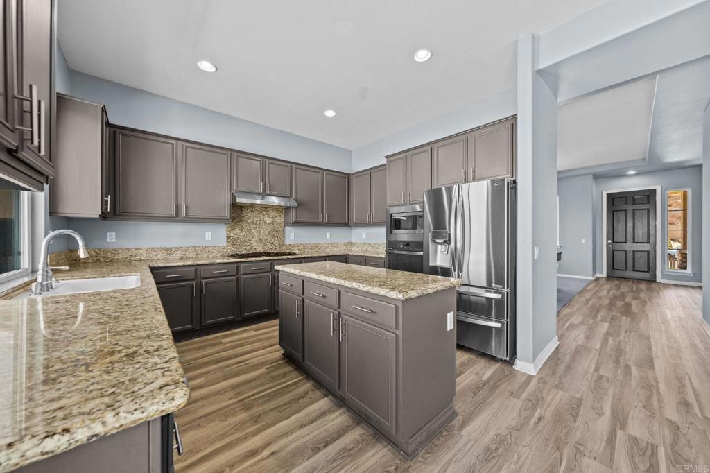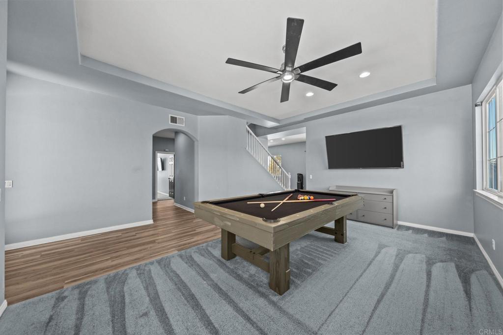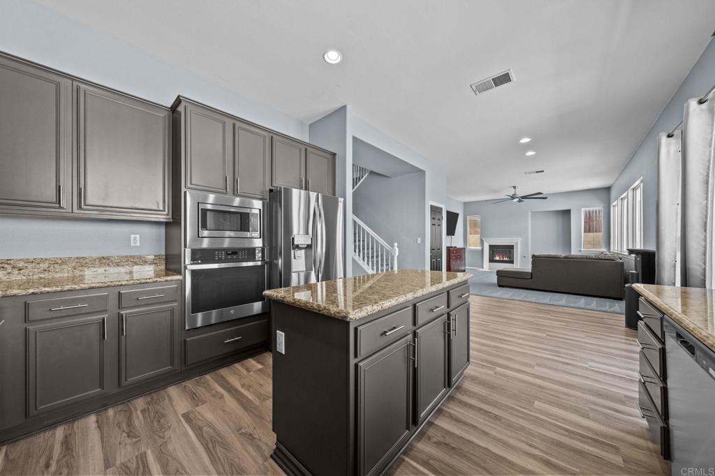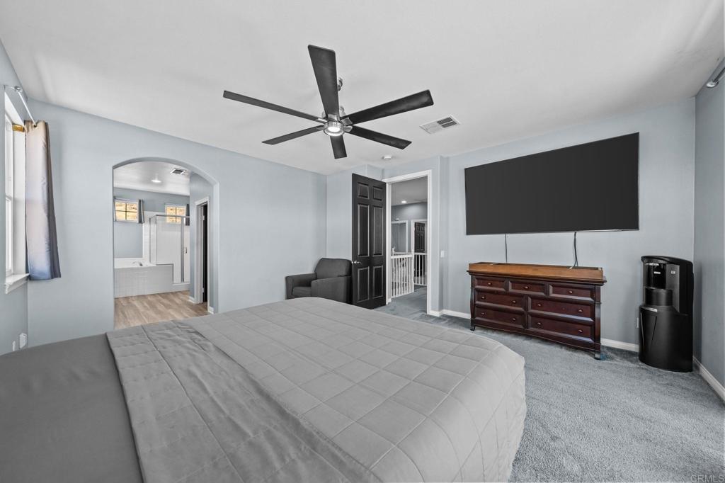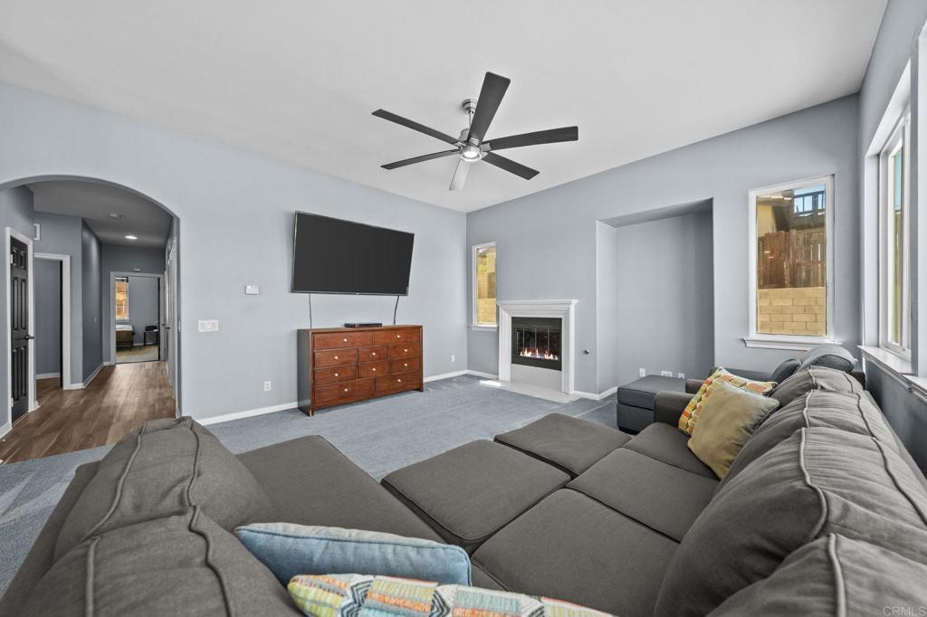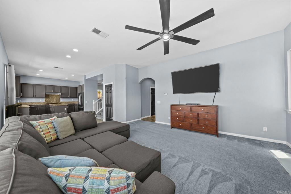 Welcome to your dream home in the heart of Menifee! This spacious 6-bedroom, 3-bath property offers over 3,250 square feet of thoughtfully updated living space on a quarter-acre lot—complete with RV parking and low-maintenance artificial turf in the front yard for effortless curb appeal. Inside, you’ll find a bright, open-concept layout with formal living and dining rooms, a large great room with a fireplace, and a gourmet kitchen featuring granite countertops, a center island, and a walk-in pantry—ideal for hosting or everyday living. A main-floor bedroom and full bath provide flexible options for guests, in-laws, or a home office. Upstairs, the expansive primary suite features a private view deck, walk-in closet, and spa-inspired bath, providing a serene retreat for you. You’ll also find a generous bonus room—perfect as a media room, game room, or additional lounge space for the whole family. The two-car garage boasts a sleek epoxy floor, providing added durability and style. Step outside to your backyard oasis with a sparkling PebbleTec pool and spa, framed by mountain views and room to entertain, relax, or play. Energy-efficient solar panels help keep your electric bills low. Located near top-rated schools, parks, and shopping, this move-in-ready home truly has it all.