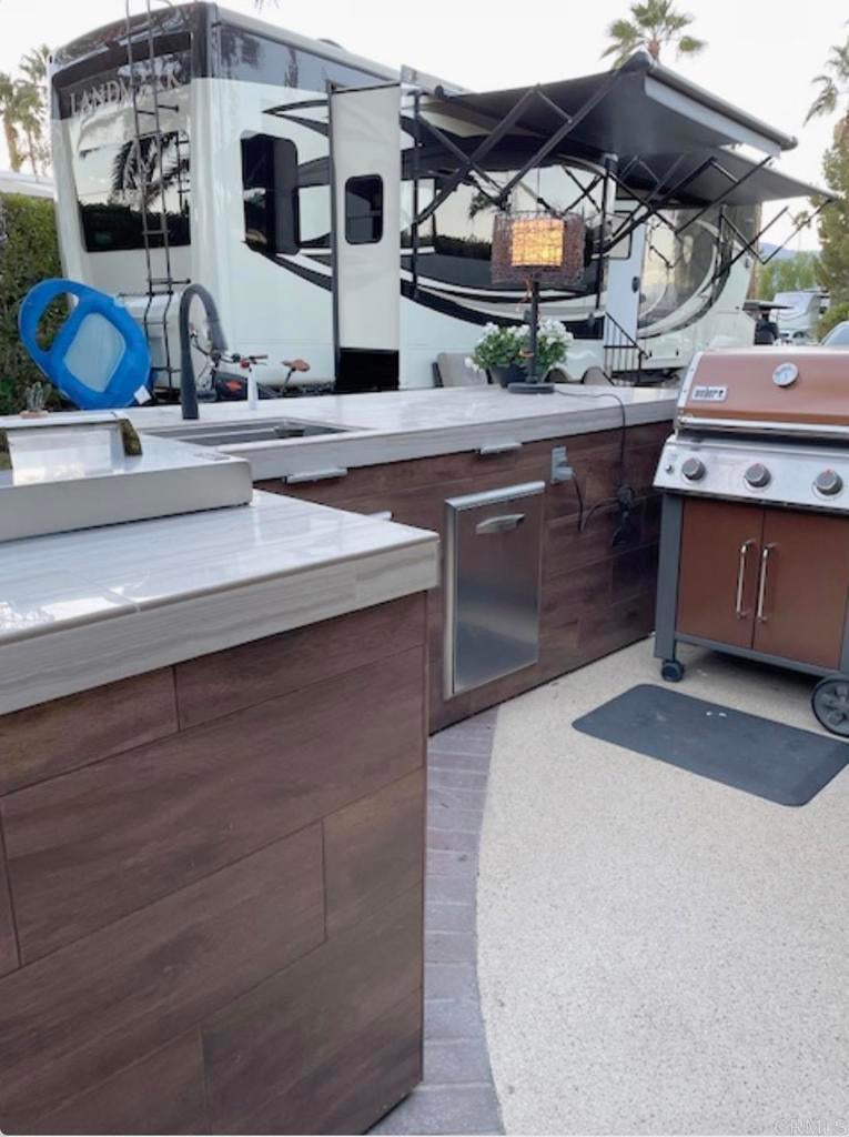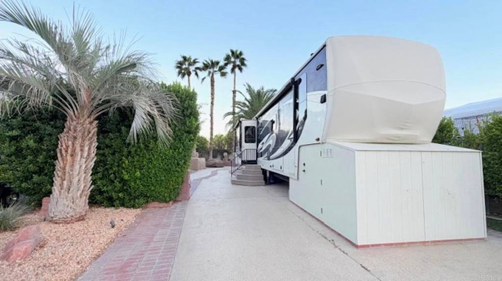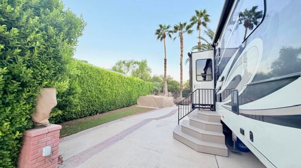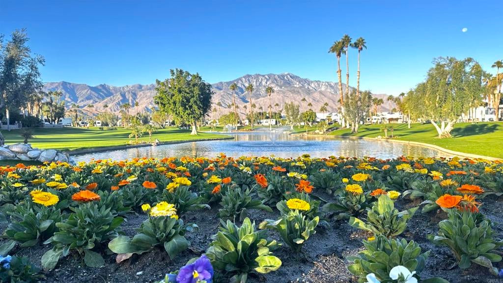 Enjoy all the amenities ORPS has to offer while living in your mostly private sanctuary! Lot 873 has the unique advantage very few lots in ORPS resort has to offer. The back green space is spacious, semi-private and yours to enjoy. The lot has 3300 SF of living space, the back "yard" has approx 1000 more sf to enjoy. 873 is surrounded by privacy hedges, 3 mature Washingtonian palms, 3 fruit trees and 2 beautiful shade canary palms along with landscape lighting. The lot has a custom gourmet kitchen with full electrical and plumbing and a large seating area with fire pit. Outdoor Resort Palm Springs (ORPS) is a Guard Gated 5-Star RV Resort Community offering an active and luxurious lifestyle featuring golf (27 holes), tennis, pickleball, swimming and more! Two clubhouses, fitness center, beauty solan, La Roma Restaurant on campus, dog park and more!