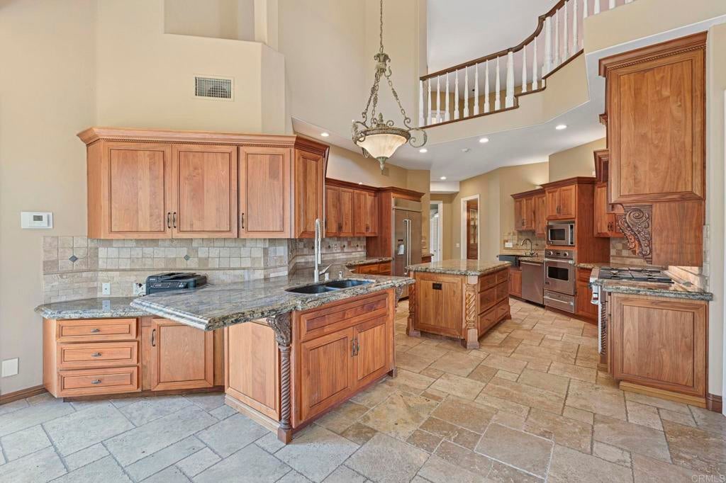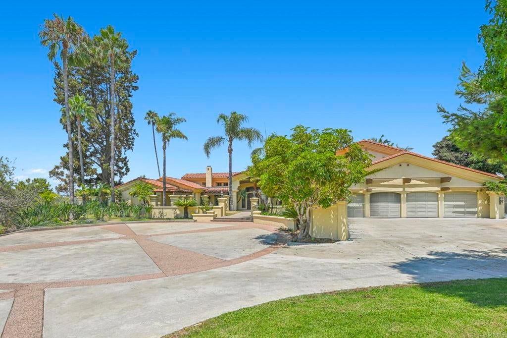 Discover this spacious 6,800 sq. ft., 5-bedroom, 6-bath gated masterpiece set on over 3 acres of pristine land. Perched atop a hill in South Pointe Farms, this residence offers breathtaking panoramic views from every vantage point. The tropical landscaping creates a private, park-like oasis, framing a sparkling pool and spa, expansive paver patios, and inviting outdoor spaces perfect for entertaining. While the mostly single-level layout includes two bedroom suites and guest quarters on the main level. Upstairs, find two additional bedrooms and a versatile bonus room (optional bedroom). A rare blend of privacy and sweeping vistas in the heart of Rancho Santa Fe.