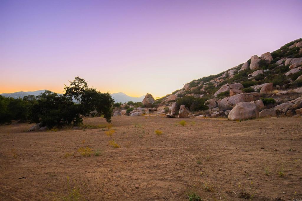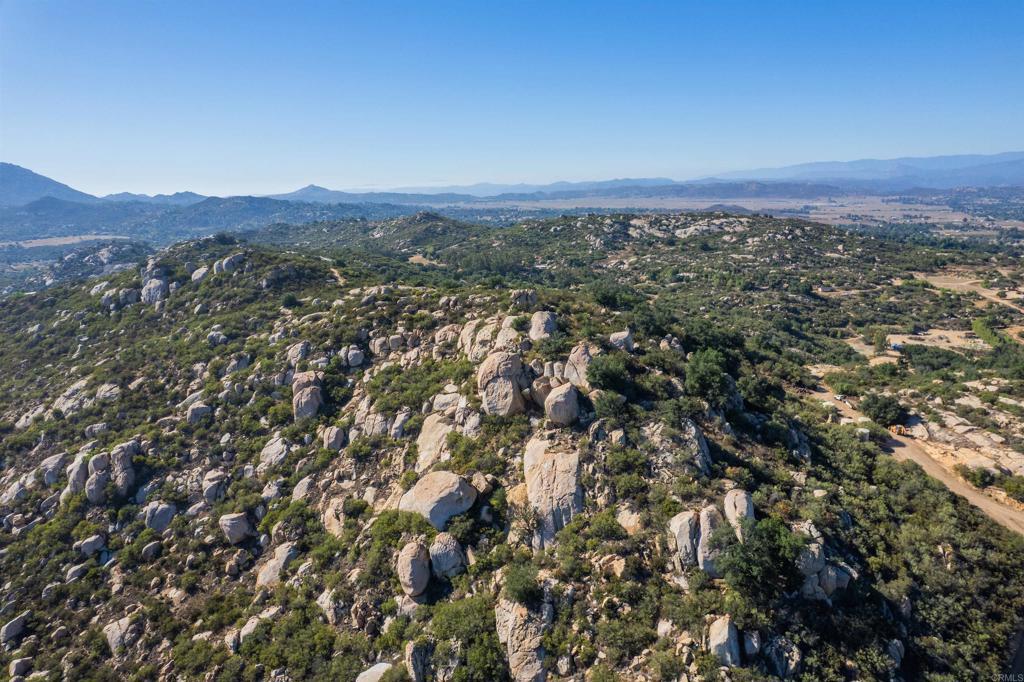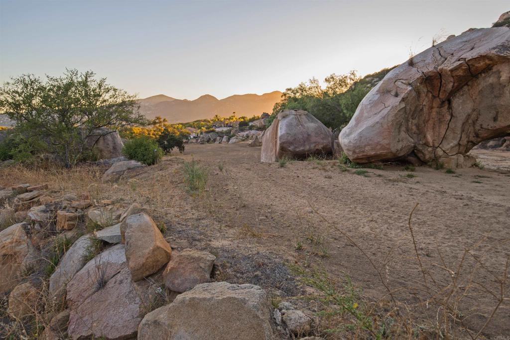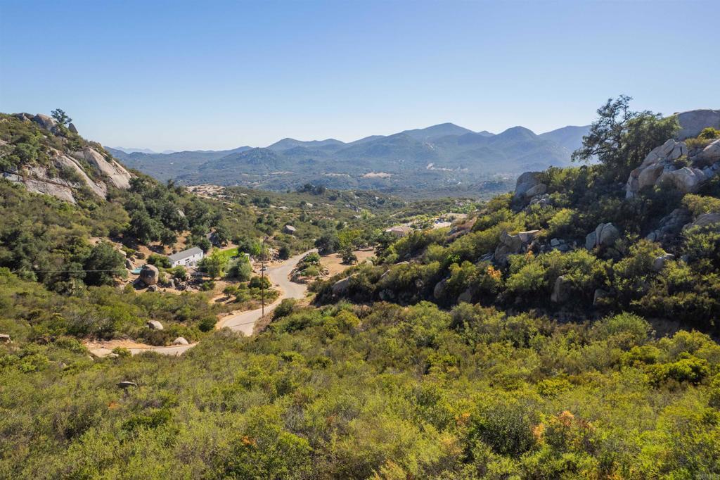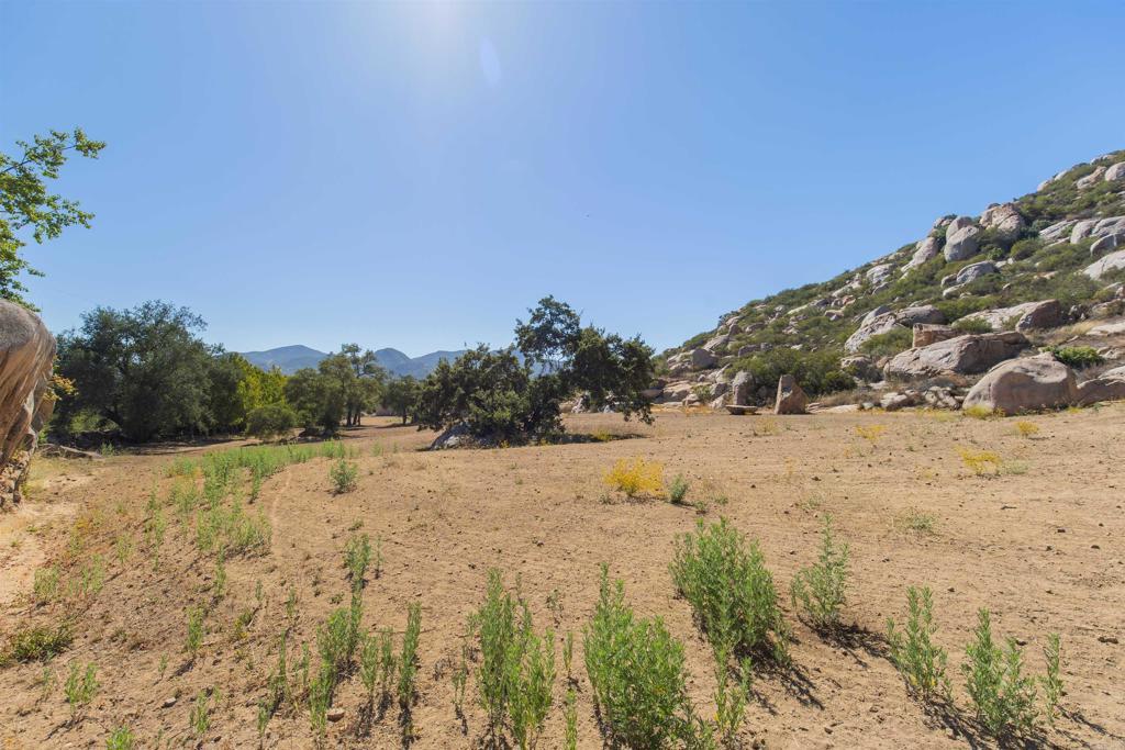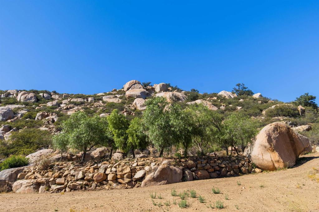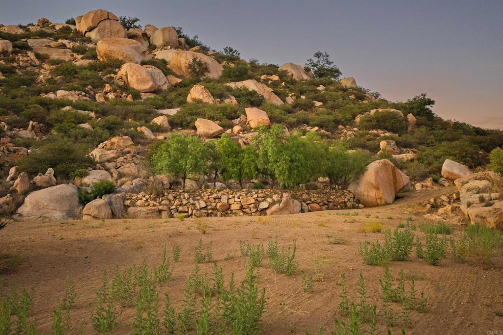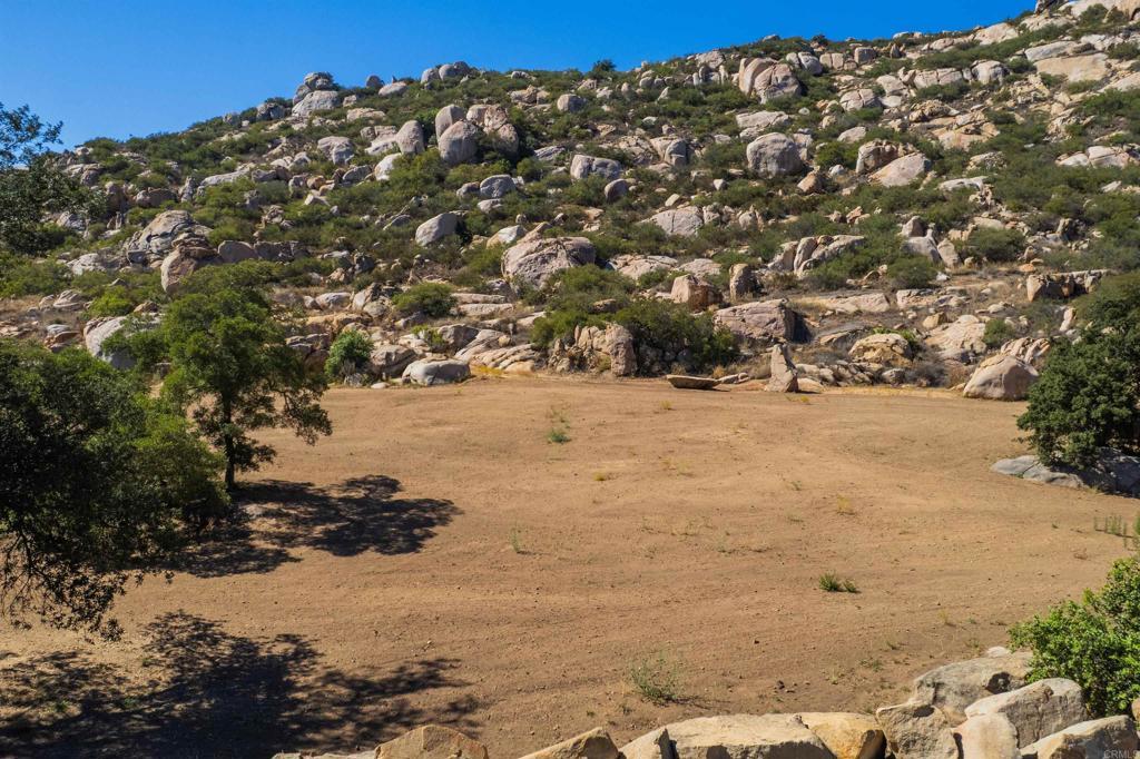 Tucked away in Ramona’s highly desirable West End lies a remarkable opportunity to create your own private estate on over 19 acres of land that feels more like a national park than a typical homesite. Surrounded by towering granite outcroppings and backed by a dramatic mountainside—fully within your ownership—this secluded property offers both tranquility and inspiration. Mature trees provide ample shade throughout the property, creating a comfortable and inviting atmosphere year-round. With an abundance of thoughtfully manicured and usable terrain, the property provides a generous canvas for your vision. Whether it's a custom residence, guest house, hobby buildings, barns, or sport courts, the possibilities are endless. Included in the sale are the owner’s thoughtfully designed conceptual plans for a sprawling single-level, 5-bedroom home of approximately 6,000 square feet, complete with a 4-car garage. The plan also features a lagoon-style pool integrated into the natural granite shelves, adjacent to a large water feature and private waterfall retreat—creating a stunning focal point against the raw natural beauty of the site. The property also enjoys westerly-facing vistas that extend to the distant Pacific Ocean and La Jolla coastline—an ever-changing view that adds a rare and remarkable dimension to the setting. Access is easy and convenient via a paved private road, and the property’s approach is marked by a grand and exclusive sense of entry that sets the tone for the exceptional space protected within. Infrastructure is already in place to support development, including a high-producing private well, a 200-amp electrical service, and 2-inch water lines with pressurized hydrants throughout the site. Two 10,000-gallon water storage tanks are strategically located at the high point of the property, ensuring ample water pressure at a moment’s notice. The work that has been done to prepare this parcel—through boundary adjustments with neighboring properties and collaboration with the County—represents years of planning and investment that a new owner will now benefit from. This is a rare chance to step into a setting that combines natural grandeur with development readiness. If you're looking for a truly special homesite, this West End property is ready to inspire your next chapter.