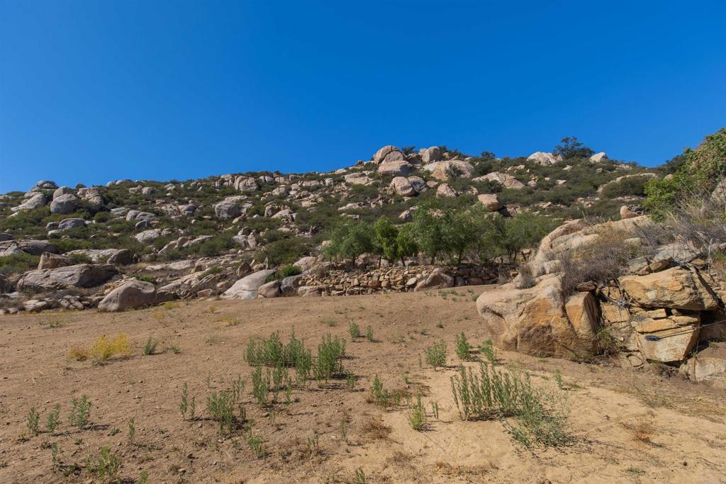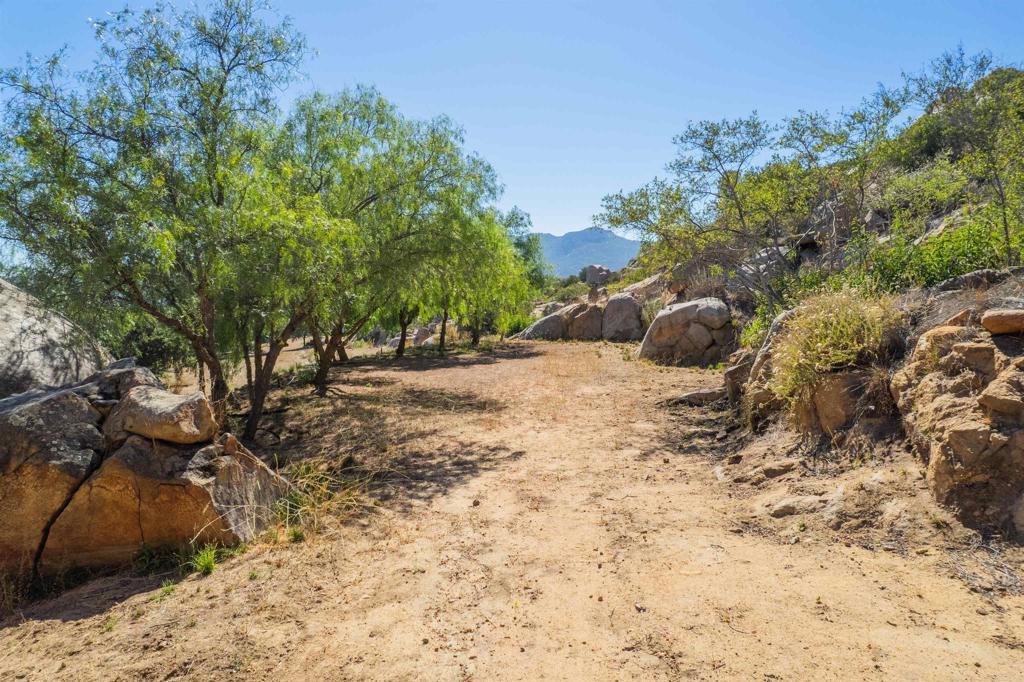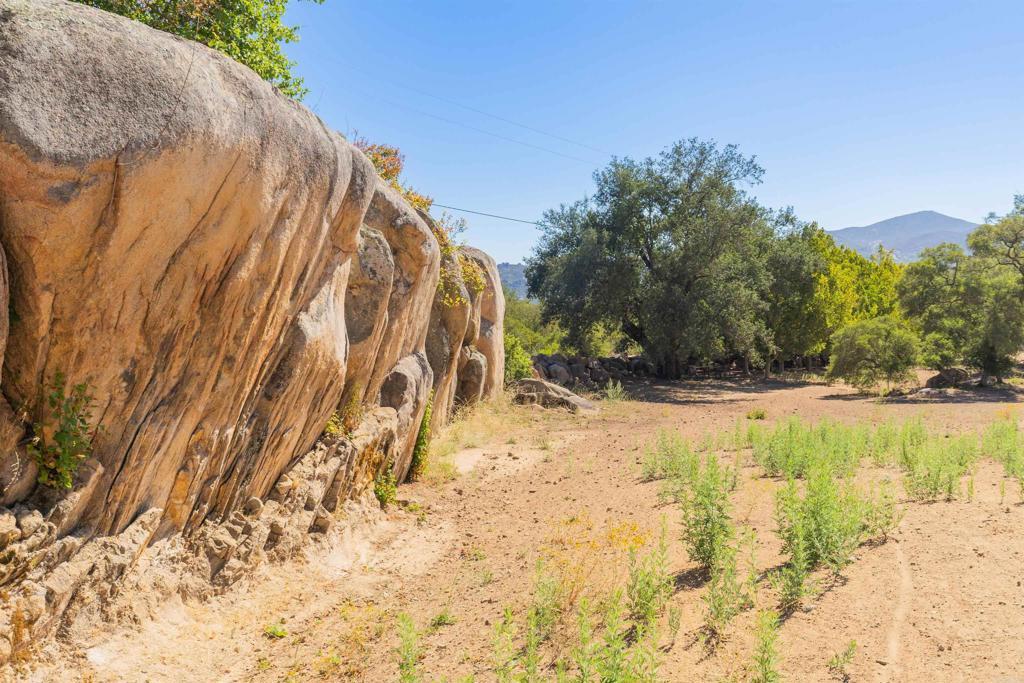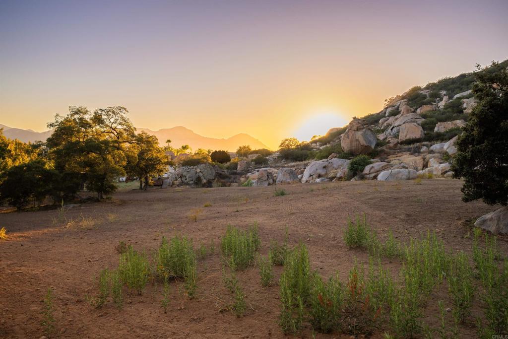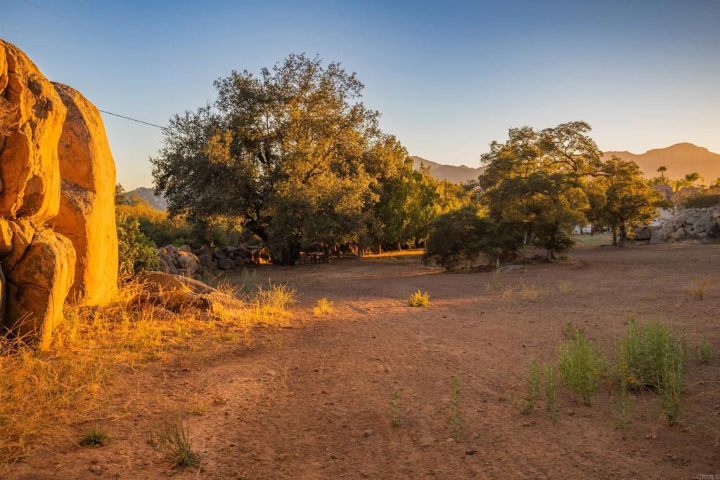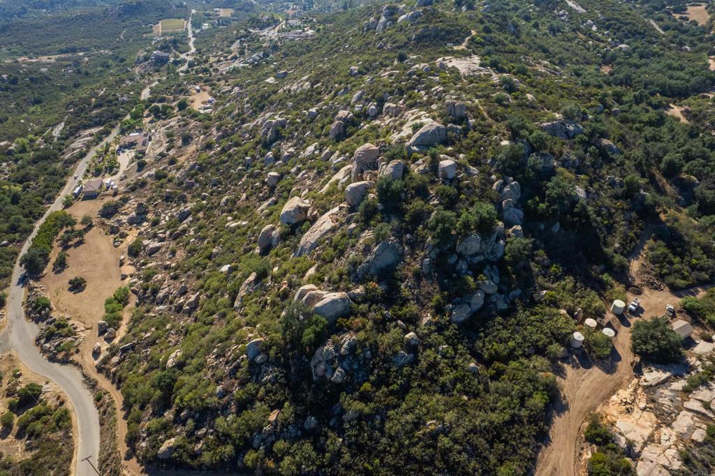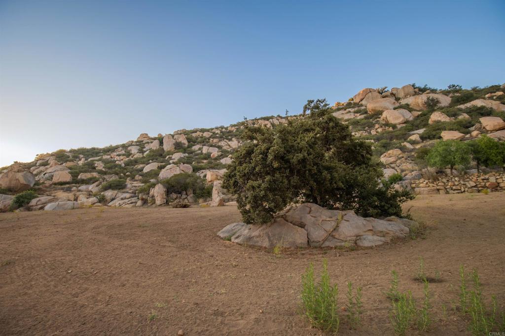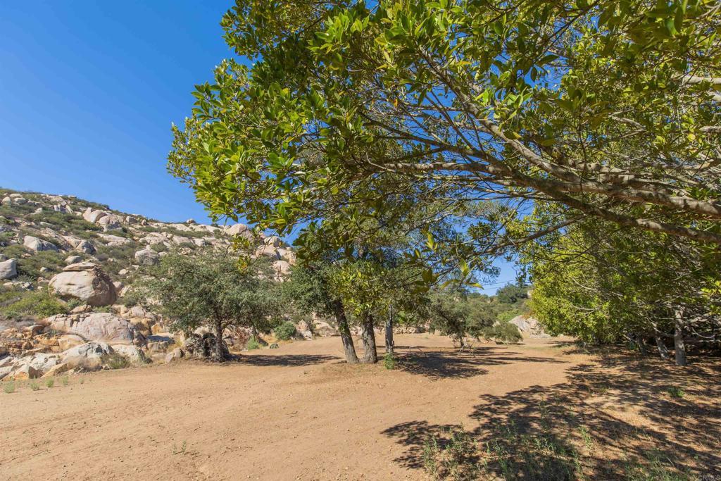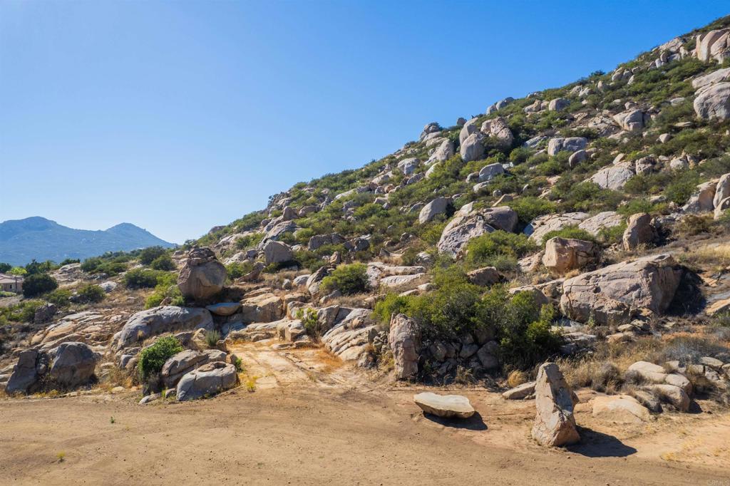 Tucked away in Ramona’s highly desirable West End lies a remarkable opportunity to create your own private estate on over 19 acres of land that feels more like a national park than a typical homesite. Surrounded by towering granite outcroppings and backed by a dramatic mountainside—fully within your ownership—this secluded property offers both tranquility and inspiration. Mature trees provide ample shade throughout the property, creating a comfortable and inviting atmosphere year-round. With an abundance of thoughtfully manicured and usable terrain, the property provides a generous canvas for your vision. Whether it's a custom residence, guest house, hobby buildings, barns, or sport courts, the possibilities are endless. Included in the sale are the owner’s thoughtfully designed conceptual plans for a sprawling single-level, 5-bedroom home of approximately 6,000 square feet, complete with a 4-car garage. The plan also features a lagoon-style pool integrated into the natural granite shelves, adjacent to a large water feature and private waterfall retreat—creating a stunning focal point against the raw natural beauty of the site. The property also enjoys westerly-facing vistas that extend to the distant Pacific Ocean and La Jolla coastline—an ever-changing view that adds a rare and remarkable dimension to the setting. Access is easy and convenient via a paved private road, and the property’s approach is marked by a grand and exclusive sense of entry that sets the tone for the exceptional space protected within. Infrastructure is already in place to support development, including a high-producing private well, a 200-amp electrical service, and 2-inch water lines with pressurized hydrants throughout the site. Two 10,000-gallon water storage tanks are strategically located at the high point of the property, ensuring ample water pressure at a moment’s notice. The work that has been done to prepare this parcel—through boundary adjustments with neighboring properties and collaboration with the County—represents years of planning and investment that a new owner will now benefit from. This is a rare chance to step into a setting that combines natural grandeur with development readiness. If you're looking for a truly special homesite, this West End property is ready to inspire your next chapter.