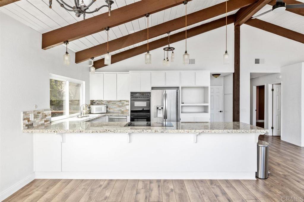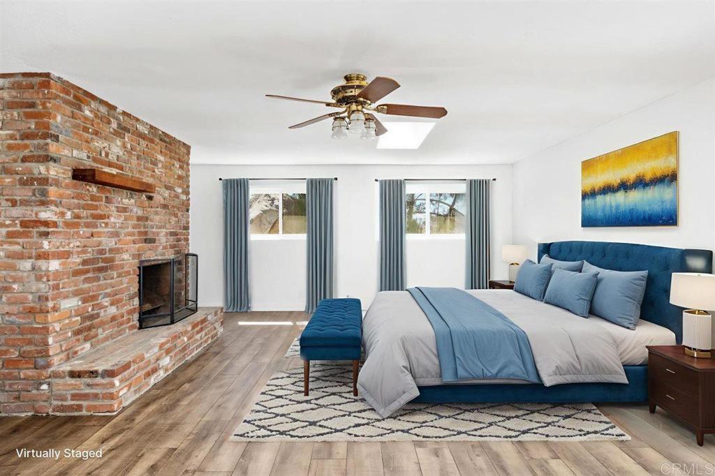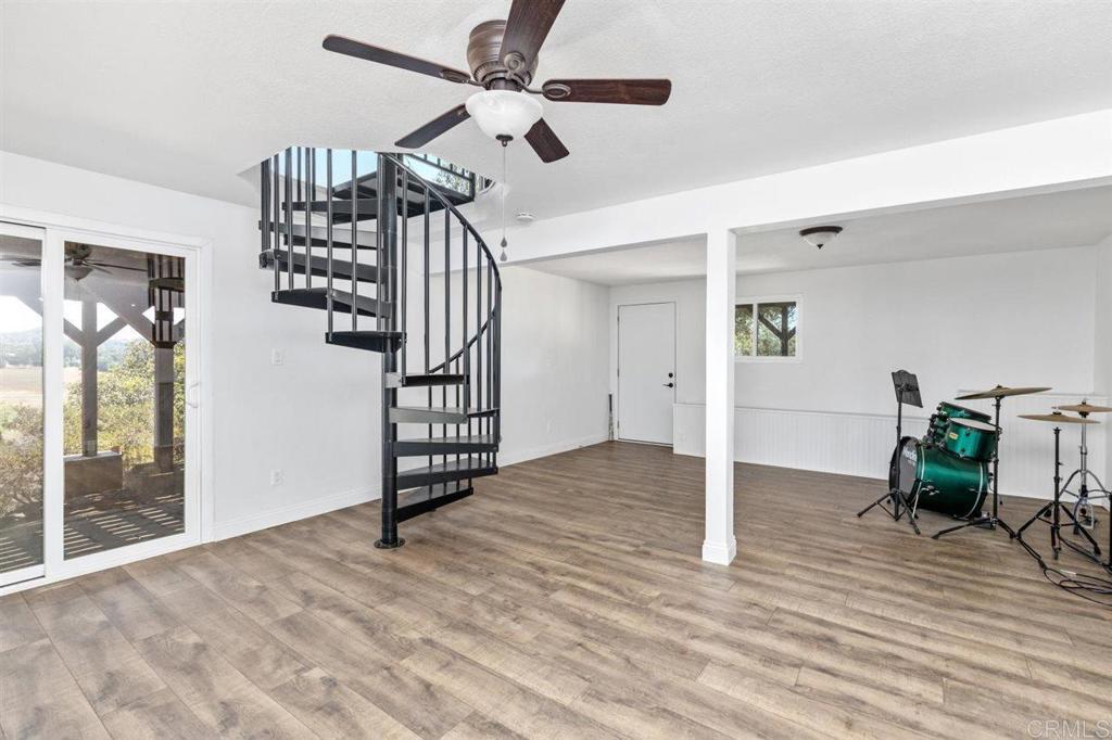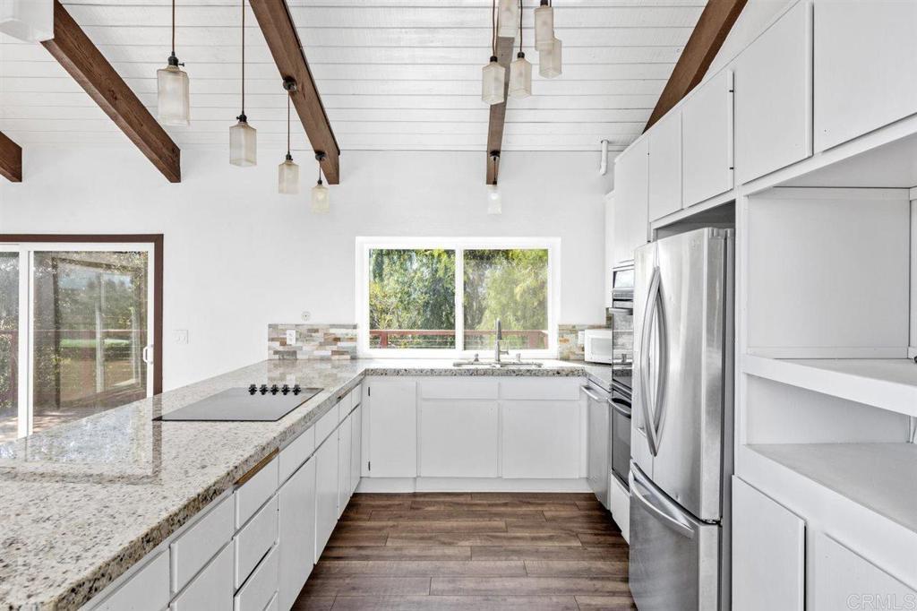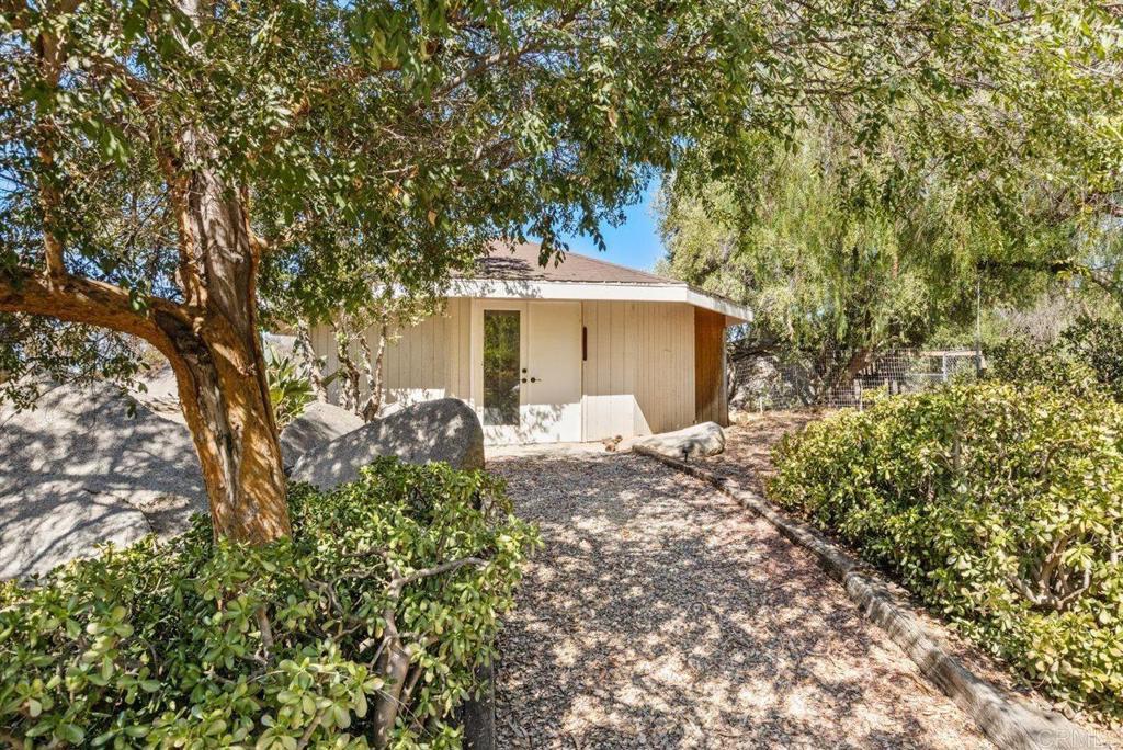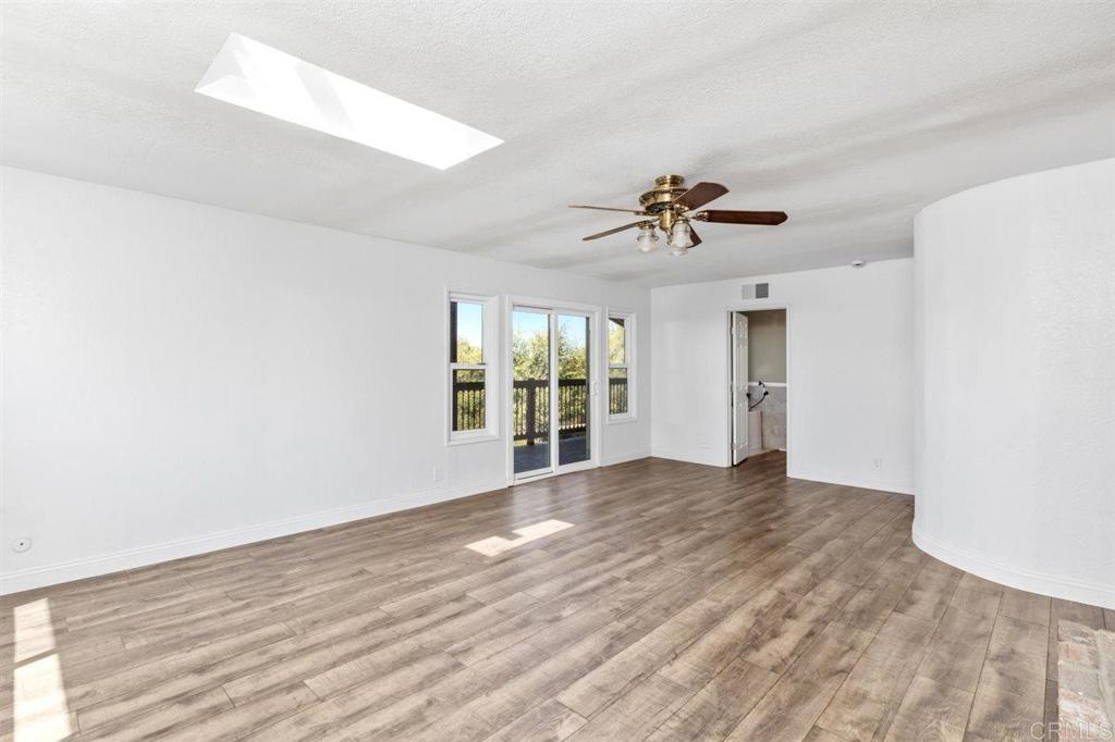 Perched on 2.08 acres with jaw dropping panoramic views of Palomar Mountain and Valley Center’s rolling hills, this unique and extensively renovated split-level property offers space, privacy, and charm in every direction. From the gated circular drive, you will find a blend of modern updates and timeless country character. Freshly painted inside and out, the home features new luxury vinyl plank flooring throughout, updated ceiling fans, a modern new spiral staircase railing, and so much more! The main level’s freshly painted light and bright vaulted open-beam ceilings and dramatic great room look out to WOW views and set the stage for everything from cozy nights by the wood-burning fireplace to lively gatherings. The entertainer’s kitchen features granite counters, an oversized island with cooktop, a walk-in pantry, and ample cabinetry. The dining area opens to an expansive, zero-maintenance EON wrap-around deck where you can enjoy breathtaking sunsets and starlit skies. The primary suite includes a brick fireplace, private balcony, and a spa-like bath with a freestanding tub. The extensively renovated lower-level bedroom and living space offers endless possibilities for a gym, guest suite, multi-generational living. Outdoors offers a playground for all ages; wander winding paths through lush landscaping, explore the unique whimsical replica western mine, or garden in the fenced vegetable beds. Pipe corrals are ready for horses, and a versatile outbuilding can serve as a workshop, art studio, office, playroom or whatever you can envision! Additional features include an attached 3-car garage with built-in cabinets and workbenches, leased solar ($303/mo), and no HOA! Truly an enchanting property not to miss!