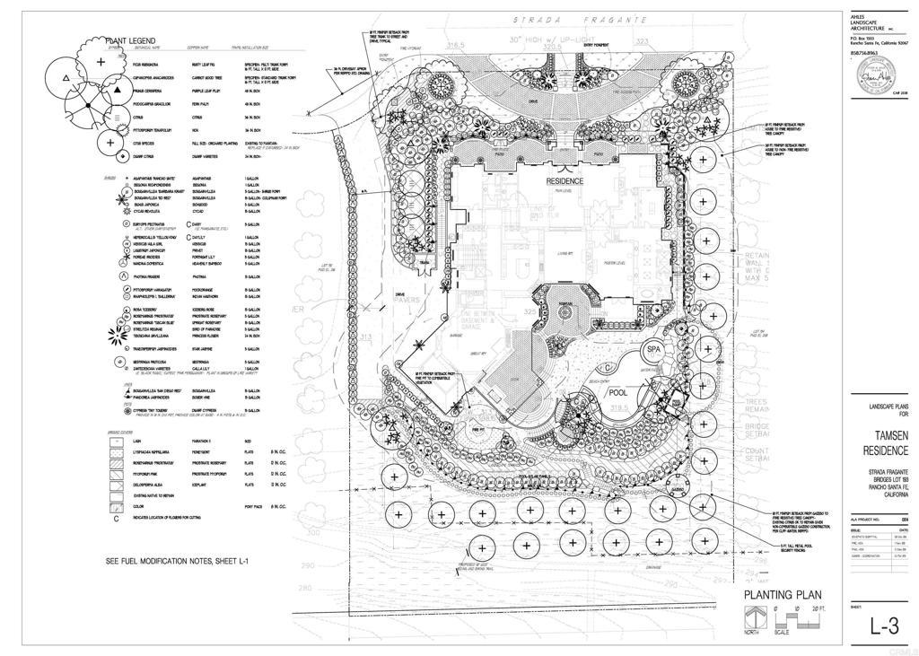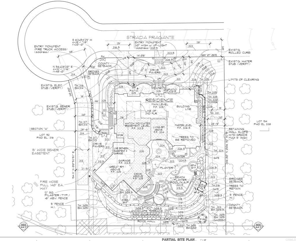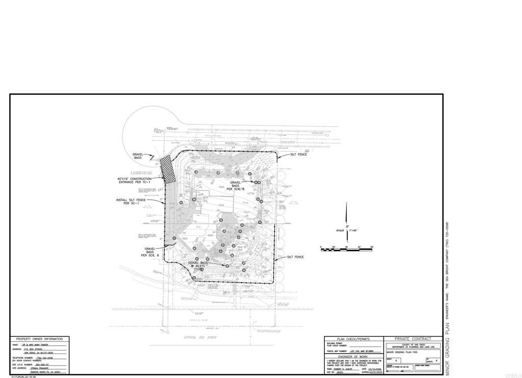Nestled within the prestigious gates of The Bridges at Rancho Santa Fe, this remarkable south-facing, one-acre lot offers a rare chance to build in one of San Diego's most exclusive private golf communities. Surrounded by mature orange groves, the property promises tranquility and privacy, providing a blank canvas for your architectural dreams. The plans for a 12,000 sq ft Italian-style mansion, inspired by the Speckles Organ Pavilion in Balboa Park and featuring unique Genoise eaves, are already stamped and approved by the Bridges HOA. With a 19,000 sq ft building pad ready, the essentials such as a water meter (costing around $35K+) and landscaping per HOA specs (about $8K+) are in place, with no rush to start building. Designed to maximize panoramic views, the home will feature a circular driveway and ample outdoor entertaining areas. Some citrus trees were cleared to enhance the lot's spectacular views, leaving two rows on the east and south sides. The front door will sit approximately 9 feet above street level. As the last unbuilt lot in the serene citrus grove area of the Bridges, this property offers unmatched exclusivity with the potential to craft a home that perfectly complements its stunning surroundings. The community is renowned for its luxury, leisure, and world-class amenities, making it an ideal setting to bring your vision to life. Don’t miss the opportunity to