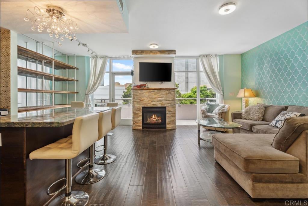 $500 off first month's rent with a one year lease. Experience urban sophistication in this spacious, partially furnished 2-bedroom, 2.5-bathroom condo at Treo, located at 1277 Kettner Blvd, Unit 300 in the heart of downtown San Diego. With 1,265 square feet of living space, this rare two-story layout offers excellent separation between living and sleeping areas—an uncommon feature in downtown residences. The modern kitchen is outfitted with stainless steel appliances, and the unit includes in-unit laundry, central heating and air conditioning, and city views for year-round comfort and style. A convenient half bath is located on the lower level, ideal for guests. This home offers dual street access, with two staircases located just outside the front door—providing quick entry to A Street and easy access to the Kettner lobby and Kettner Boulevard. It’s also situated on the beautifully landscaped garden-level courtyard, offering immediate access to the pool, fitness center, and other amenities. The combination of street-level convenience and resort-style features is truly unique in downtown living. One assigned garage parking space is also included, adding to the convenience of this urban retreat. Residents of Treo enjoy access to a range of upscale amenities, including a heated lap pool, spa, fitness center, BBQ areas, and a clubhouse. This home combines contemporary comfort with vibrant city living, making it a standout choice for those seeking convenience, style, and downtown energy.