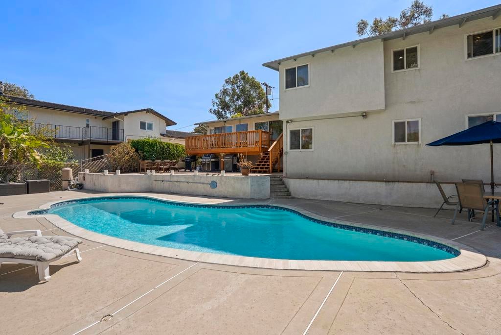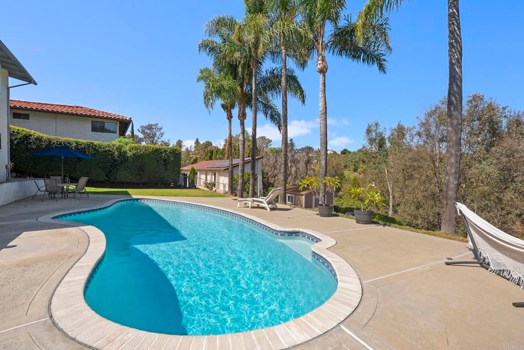 Discover your own private paradise in Fletcher Hills—where panoramic views, a sparkling pool, and expansive outdoor living areas create the perfect retreat. Spacious 4-bedroom, 2-bath split-level home offers 1,920 SF of living space on a rare 16,000 SF usable lot. Home is tucked away on a quiet cul-de-sac for ultimate privacy. Step inside to find a warm and inviting living room with a cozy wood-burning fireplace, skylights, vaulted ceilings, and double-pane windows that bring in natural light. The family room showcases mid-century wood beam ceilings, adding to the home’s character. The upgraded kitchen is a chef’s dream with a 5-burner gas range, double ovens, wine fridge, newer cabinetry, a large pantry, gorgeous counters, and an eat-at island. The backyard is an entertainer’s paradise. Enjoy the sparkling pool, a brand-new deck with sweeping views, multiple outdoor sitting areas, a fire pit, and a shed for extra storage. Low-maintenance landscaping in the front yard makes upkeep easy. Additional highlights include owned solar, central AC and forced air heat, and plenty of space to relax or host. Possible ADU! This home truly blends style, function, and lifestyle in desirable Fletcher Hills location.