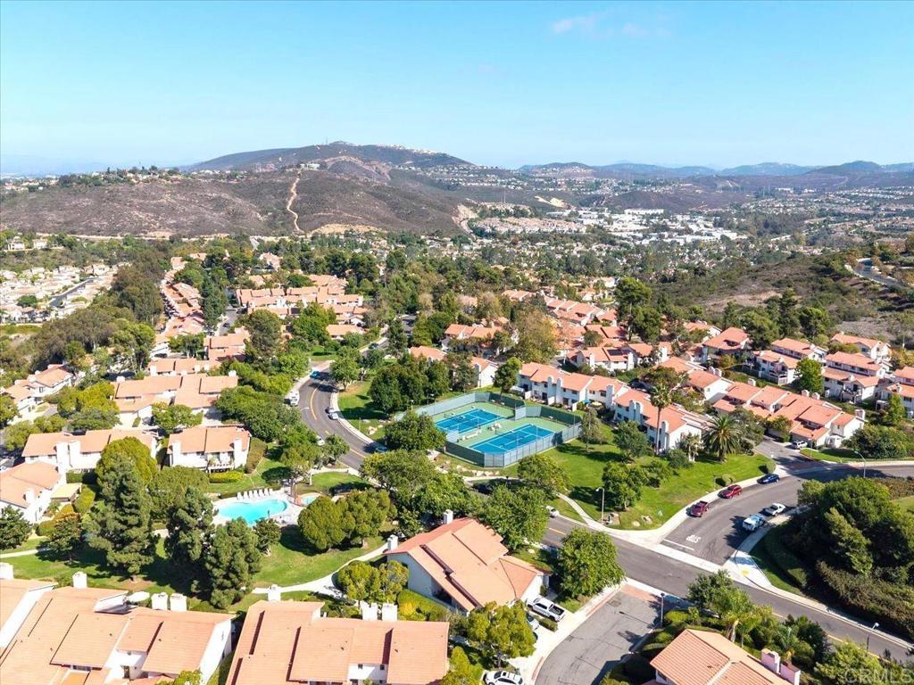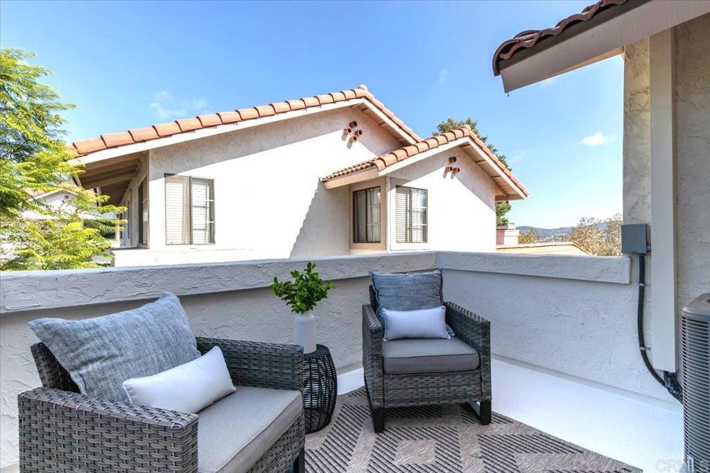 Beautifully Updated Townhome in La Costa! This light-filled 2-bedroom, 2-bath corner unit offers a thoughtfully designed floor plan that blends comfort, convenience, and style. The bright and airy living area features breathtaking mountain views and opens to a spacious balcony—perfect for entertaining or enjoying your morning coffee or evening glass of wine. The primary suite includes an ensuite bathroom and is large enough to accommodate a sitting area or home office setup, complete with built-in closets and custom shades. The updated kitchen boasts sleek stainless-steel appliances, a brand-new wine refrigerator, and ample storage. Additional upgrades include dual-pane windows and sliders with shutters, central air conditioning with a Honeywell Smart thermostat? and 2 sets of Bluetooth ceiling speakers. In-unit laundry closet with a full-size washer and dryer. Highlights continue with an attached one-car garage featuring newly finished epoxy flooring and extra storage space. Additional parking includes a reserved space and a private driveway. A newly remodeled 20’ x 5’ storage room beneath the property offers exceptional space for all your storage needs. Residents enjoy resort-style amenities, including two sparkling pools, spas, barbecue area and tennis courts. Ideally located minutes from shopping, dining, beaches, golf courses, the library, movie theaters, Omni La Costa Resort, Bressi Ranch, Palomar Airport, and more. Within a highly rated school district, this home presents an outstanding opportunity to live in the desirable La Costa community.