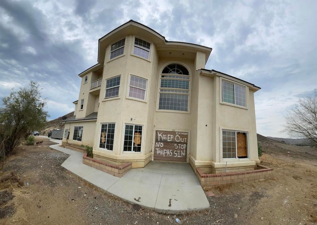 Rare contractor or investor special in rural Hemet on 2.4 acres with panoramic hillside views! This 3,643 sq ft, 3-story estate home offers incredible potential for the right buyer. Privately located at the end of the street, the property features 3 bedrooms, 2.5 baths, a 4-car attached garage, an in-ground pool with a custom slide, spacious decks on the 2nd and 3rd levels, and a long driveway perfect for RVs, toys, or multiple vehicles. Built in 2007, the home has great bones and an open layout, but it requires a full rehab a prime fixer opportunity to build value and equity. The lower-level living room offers conversion potential into a game room, extra bedrooms, or even into an ADU. Due to its condition, the property will not qualify for traditional financing. Located just minutes from the 215 Freeway, Winchester, Diamond Valley Lake, and other fast-growing communities. Customize this home into your private oasis!