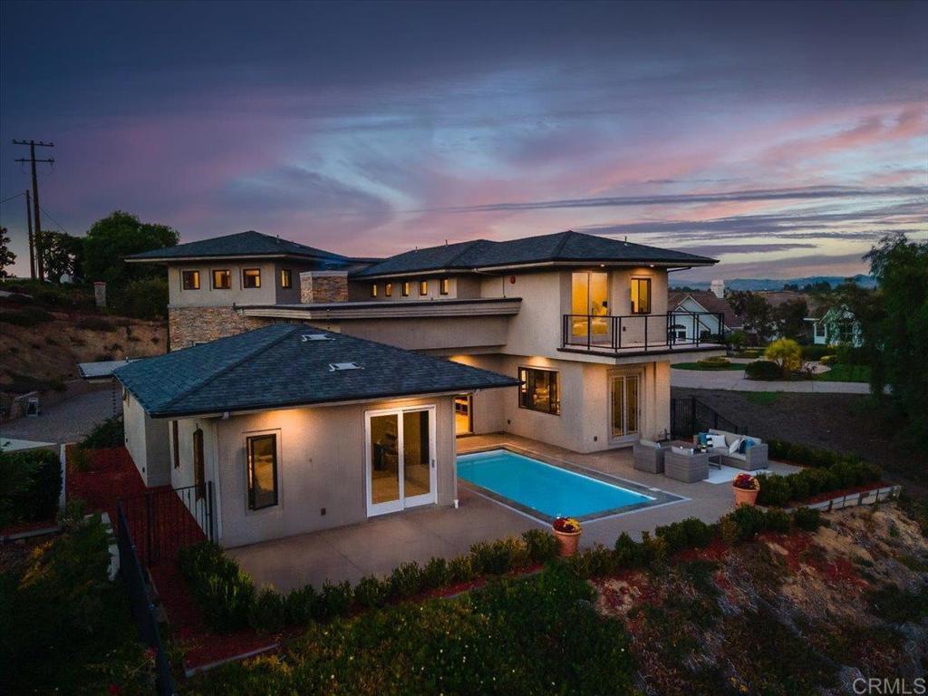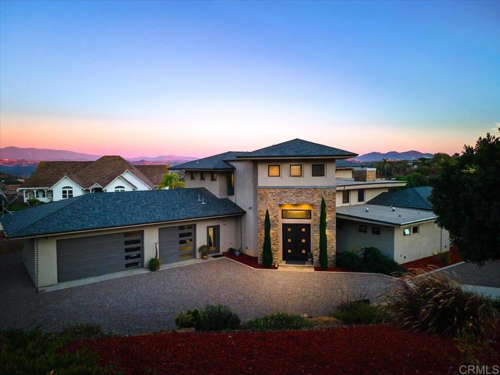For the distinctive buyer looking for privacy, land to create your own lifestyle, 1st floor primary bedroom, nearly 1,000 square foot garage space for car collectors and more...... Modern Sophistication Meets Tranquil Fallbrook Living. Step into a world where modern architecture and natural beauty converge. This contemporary masterpiece in an exclusive gated community in Fallbrook offers 3,642 square feet of sophisticated living, seamlessly blending clean lines, warm materials, and exceptional craftsmanship. Designed to live like a single-story residence, this home offers the perfect balance of luxury, functionality, and privacy — all set in one of North County’s most serene landscapes. Architectural Design & Flow. The open-concept layout is anchored by dramatic sight lines and expansive glass that blur the boundary between indoors and outdoors. A floating staircase serves as a sculptural centerpiece, leading to the home’s upper-level with potential in-law suite and 3 more bedrooms, while the primary bedroom and all main living spaces reside on the first floor for effortless single-level living. Andersen pocket doors fully retract into the walls, revealing a spectacular central courtyard with pool and sun-drenched lounging areas creating a private indoor-outdoor sanctuary perfect for entertaining or quiet relaxation. Luxury Finishes & Details. Every element of this home was curated with precision and purpose: Sub-Zero and Thermador appliances, including double ovens and warming drawers, elevate the culinary experience. Restaurant-like pantry with butler's door. Hansgrohe plumbing fixtures provide refined European design throughout each bath. The real wood-burning fireplace, also plumbed for gas, offers warmth and ambiance in the great room. Striking Eleganza tile flooring flows through the interior, adding texture and sophistication. Every space reflects a commitment to high design, blending functionality with timeless appeal. Primary Suite & Guest Accommodations. The first-floor primary suite offers serenity and comfort, featuring direct access to outdoor living areas and poolside tranquility. A private in-law suite provides a perfect retreat for extended family or guests, while additional bedrooms upstairs enjoy exceptional privacy and sweeping views. Performance & Infrastructure. Engineered for modern living, the home includes: A three-car garage (potential for 4 cars) spanning approximately 1,000 square feet, ideal for vehicles and storage, with a pass through garage door to the wrap-around driveway. A 450-gallon propane tank supporting premium kitchen appliances and energy efficiency. Two AC condensers for zoned comfort throughout the home. A well producing 25 gallons per minute with a 2,800-gallon holding tank offering independence and reliability. Privacy, Comfort & Setting. Located within a gated enclave of contemporary estates, this residence offers both security and serenity. Thoughtful design ensures every room has a connection to the landscape whether it’s sunlight cascading across the courtyard pool or evening breezes drifting through fully opened walls of glass. A Statement of Modern Living. This is more than a home; it’s a lifestyle statement, built for those who appreciate architectural integrity, quality materials, and seamless indoor-outdoor flow. Every space invites you to relax, entertain, and enjoy Fallbrook’s natural beauty in contemporary luxury. With over 2 acres of land at your avail, there are a plethora of opportunities for the land (ADU, lease to produce company/wine company, etc.) Space for RV, boat.