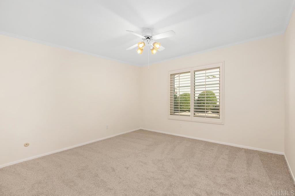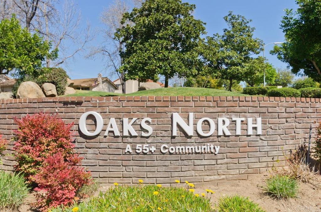 Welcome to this beautifully maintained single-story home! This inviting residence features 3 bedrooms (one is currently being used as an office, complete with built-in storage). The interior has been freshly painted and updated with brand-new carpet throughout, and plantation shutters adorn the windows. The spacious living room showcases vaulted ceilings, a gas fireplace, and abundant natural light, creating an inviting and open atmosphere. The kitchen is equipped with stainless steel appliances and ample cabinetry. The primary bedroom features a large walk-in closet and a sliding glass door that provides easy access to your expansive backyard, where you can relax and enjoy peaceful views of the community and surrounding nature. Experience the serene and active lifestyle that Oaks North, one of San Diego’s most desirable 55+ communities, is known for with beautifully maintained grounds, friendly neighbors, and resort-style amenities.