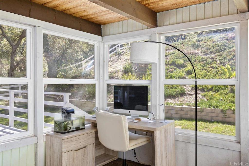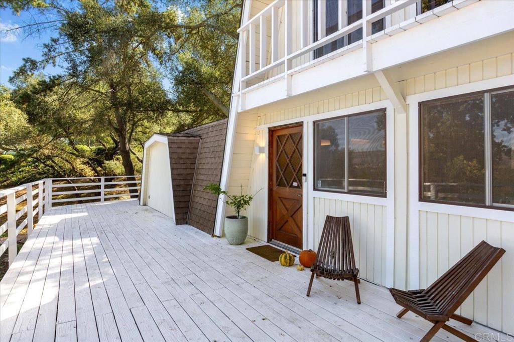 **PRICE IMPROVEMENT** If you’ve been searching for a well-priced home in San Diego County with unmatched character, look no further. This unique Fallbrook retreat offers the perfect blend of peaceful rural living with easy access to town, freeways, and amenities. Set on a beautiful 1.5-acre lot surrounded by mature oak trees and scenic views, the property feels like a private escape. This 2-bedroom, 2-bath charmer includes a flexible sunroom ideal for a potential third bedroom conversion, and the lot behind the main home may be suitable for an ADU (buyer to verify). A newly refreshed wraparound deck invites you in, where distinct architectural features and design details add charm throughout. Inside, wood accents, exposed beam ceilings, and a freestanding wood stove evoke the ambiance of a mountain cabin. You’ll feel like you’re on vacation year-round. The primary bedroom is conveniently located on the main floor. Upstairs offers a second bedroom, a half bath, and a flexible loft space perfect for a home office, reading area, or creative retreat. A highlight of the home is the open-beam sunroom, approximately 200 SF, offering expansive views and abundant natural light. This versatile space can function as a studio, office, or even a third bedroom, expanding both comfort and value. Recent upgrades include a remodeled bathroom, new backyard lawn, refreshed deck, updated family room, charming split-rail fencing, and a newly installed septic tank. With room to garden, space to expand, and a setting that provides peaceful privacy just minutes from town, plus low taxes and no HOA, this home captures the essence of Fallbrook living at a compelling value. This character-rich home is full of potential. Schedule your visit today and see it for yourself.