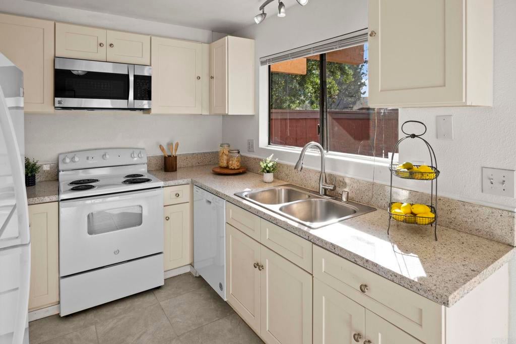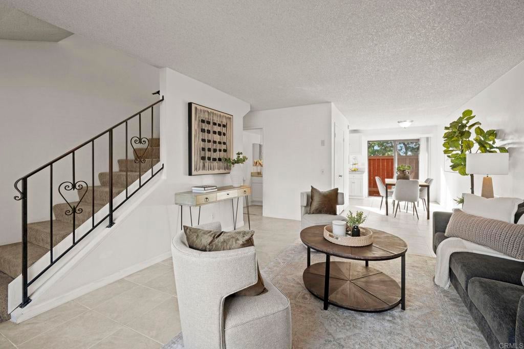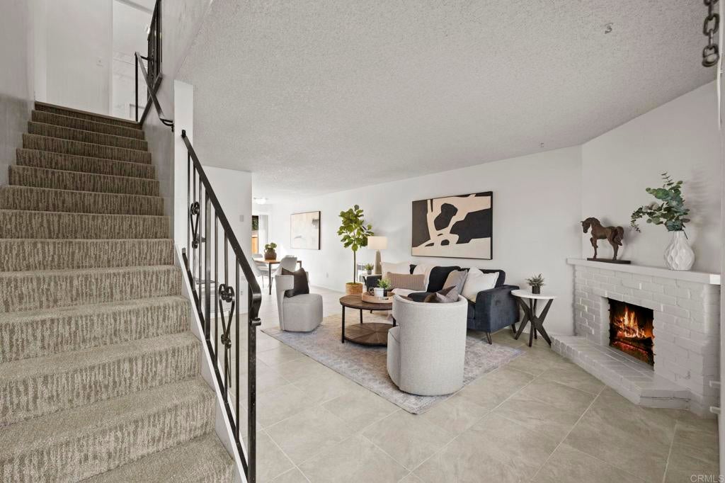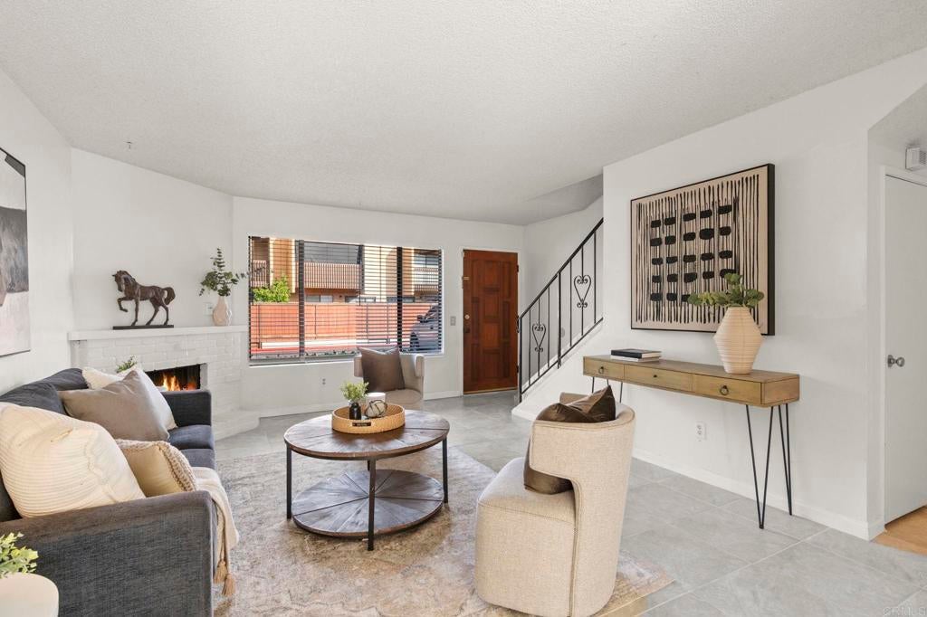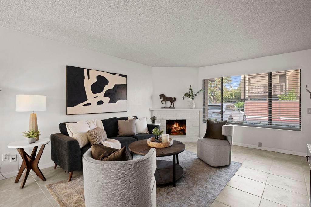 Best value for 3 bedroom condo in Mira Mesa! VA and FHA approved! Beautiful common area grounds with pool and water features. Enclosed patio perfect for a pet and 2 of the 3 upstairs bedrooms have large private balconies. Indoor laundry. Fireplace. Beautiful oversized tile floors, upgraded berber carpet on stairway and all luxury vinyl planking upstairs. Large rooms, and lots of closet space. Upgraded kitchen and baths. Wonderful central convenient location across from Hourglass Park and walking distance to Miramar College, shopping, restaurants etc... Hourglass Park is next door and has 2 swinming pools, lighted tennis courts, fields for baseball, softball, soccer, basketball and volleyball. HOA covers water, trash, sewer, common area maintenance, exterior building maintenance and master insurance.