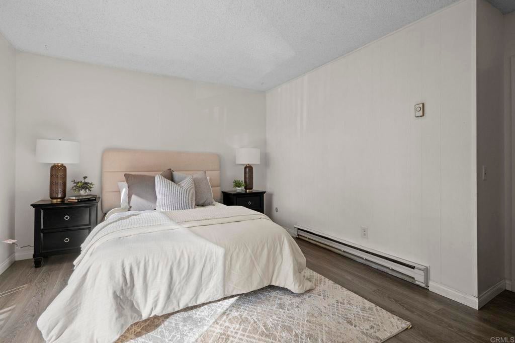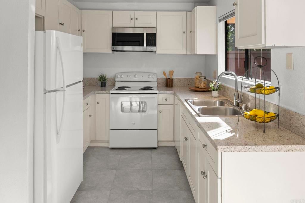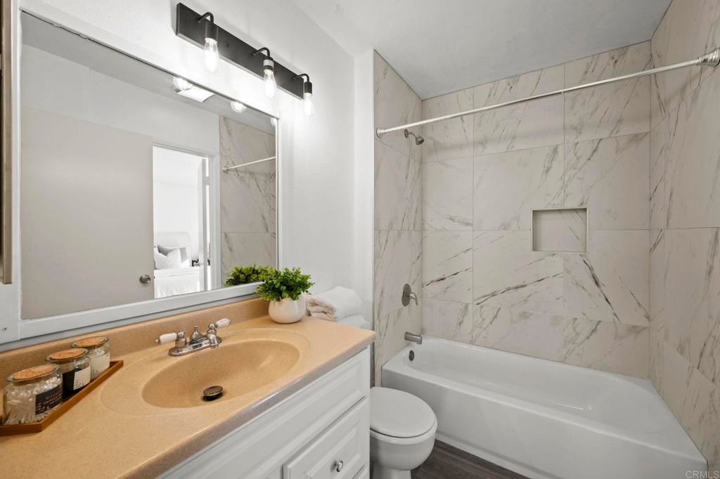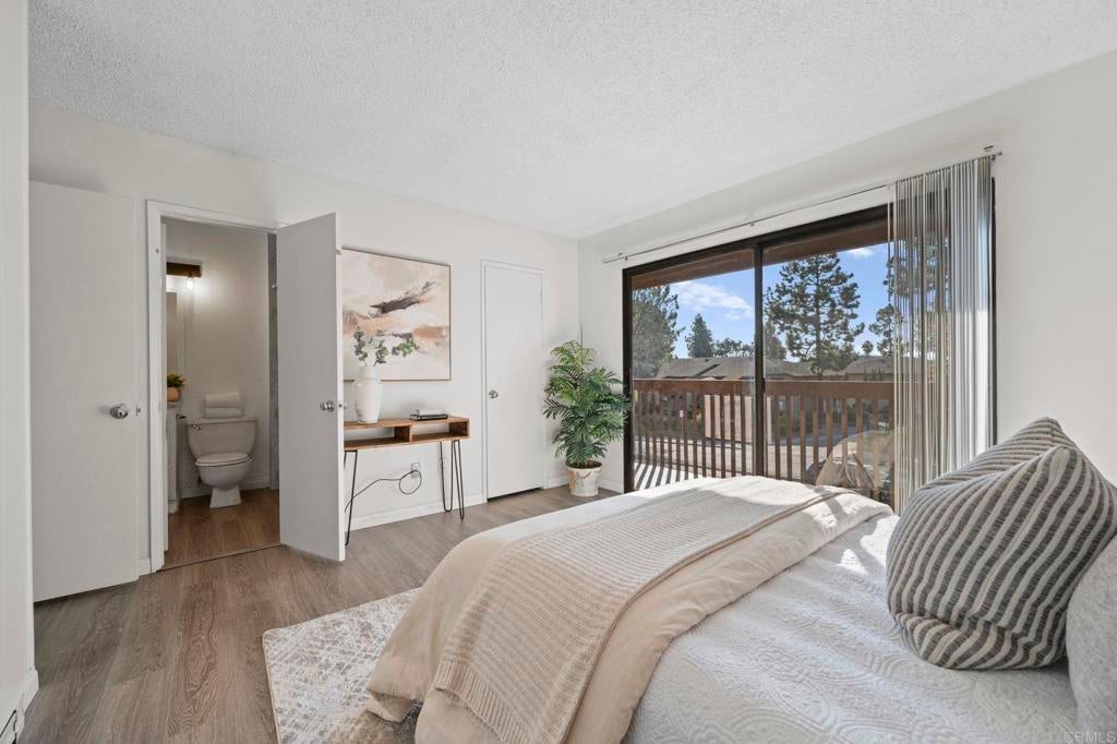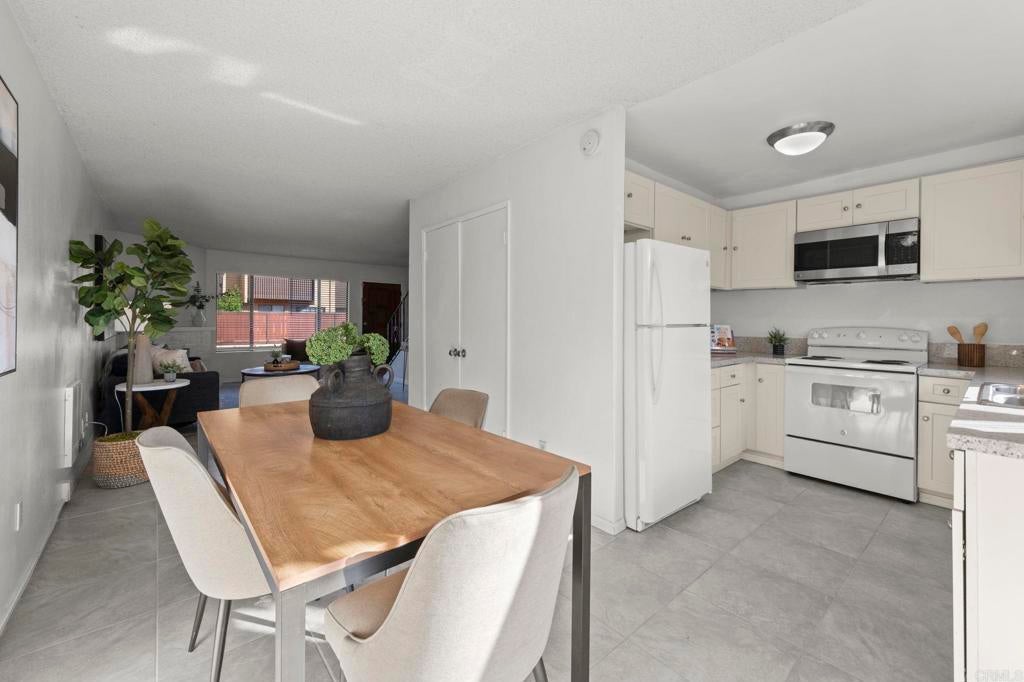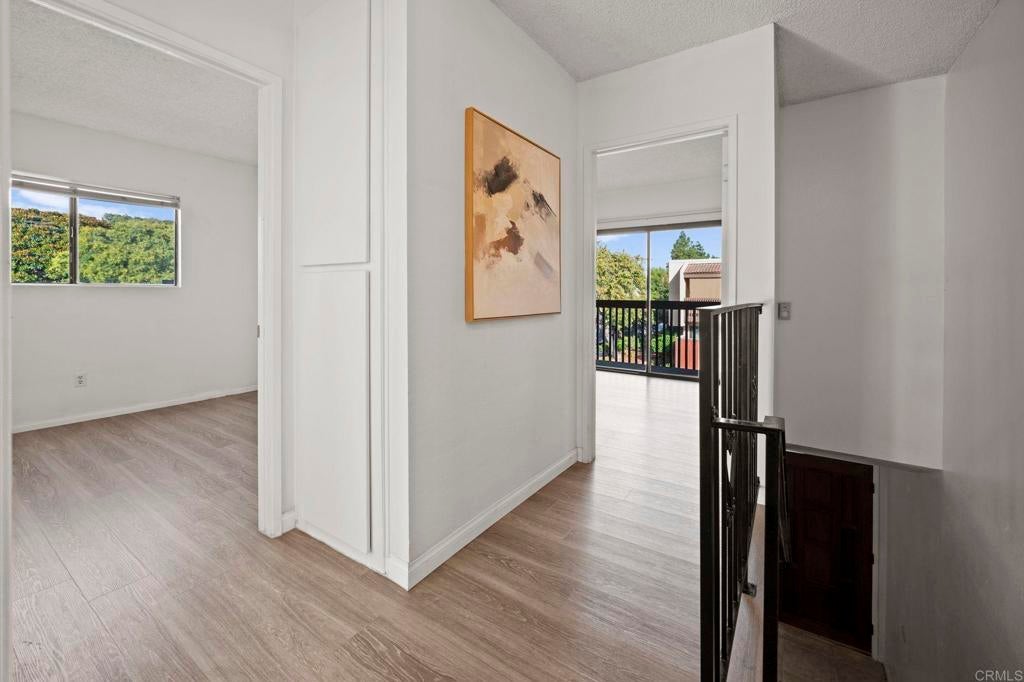 Best value for 3 bedroom condo in Mira Mesa! VA and FHA approved! Beautiful common area grounds with pool and water features. Enclosed patio perfect for a pet and 2 of the 3 upstairs bedrooms have large private balconies. Indoor laundry. Fireplace. Beautiful oversized tile floors, upgraded berber carpet on stairway and all luxury vinyl planking upstairs. Large rooms, and lots of closet space. Upgraded kitchen and baths. Wonderful central convenient location across from Hourglass Park and walking distance to Miramar College, shopping, restaurants etc... Hourglass Park is next door and has 2 swinming pools, lighted tennis courts, fields for baseball, softball, soccer, basketball and volleyball. HOA covers water, trash, sewer, common area maintenance, exterior building maintenance and master insurance.