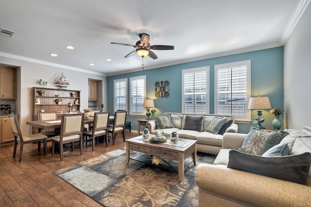 REDUCED PRICE! MOTIVATED SELLER! Exquisite Luxury Living in Harveston, Temecula Welcome to unparalleled elegance in the prestigious Harveston community of Temecula, California. This magnificent 4-bedroom, 4-bathroom residence spans 3,675 square feet, making it the largest and most luxurious home in the development. Built in 2006 and thoughtfully upgraded, this two-story masterpiece blends modern sophistication with family warmth. A custom front porch with stately pillars and ambient LED lighting greets you. Inside, soaring 9-foot ceilings on both levels (a rare feature in this community) and expansive, naturally lit interiors await. Freshly painted walls, rich laminate wood floors, elegant crown molding, and wood shutters on 38 rescreened windows enhance the home's charm. The recently remodeled gourmet kitchen boasts top-of-the-line new appliances, pull-out drawers in custom cabinets, and new LED lighting. Adjacent are the upgraded pantry and laundry room. The open-concept design connects the kitchen to a spacious family room with a built-in entertainment system and cozy gas fireplace. A formal dining area awaits special occasions. Upstairs, retreat to the luxurious master suite featuring a huge walk-in closet and custom storage with chic barn doors. The master bathroom offers upscale finishes, new LED lighting, and a new frameless shower door. Additional living spaces include a downstairs guest bedroom with full bathroom, an upstairs office perfect for remote work, a large bonus room complete with a pool table, and a downstairs den. Step outside to your resort-style backyard—a private oasis designed for relaxation and entertainment. Enjoy the cocktail swimming pool and jacuzzi with an integrated firepit, custom lighting, pavers, a charming gazebo, and a built-in BBQ island. The 6,098 square foot lot includes six fruit trees—lemon, white nectarine, and fig—offering delightful homegrown produce. Modern conveniences abound with 20 solar panels under a transferable lease, generating 11,000 kilowatts per year at a fixed rate of $149 per month, ensuring energy savings. A whole-house fan and water filtration system enhance comfort. The three-car tandem garage features new door springs, a quiet opener, ample storage with cabinets and overhead units, and an RV 30amp hookup. Located within the highly sought-after Harveston community, HOA dues of $133 per month provide access to exceptional amenities: a sparkling pool with a new $500,000 splash zone for children, cabanas, umbrellas, spa, community clubhouse, barbecue and picnic areas, biking and hiking trails, jogging track, playgrounds, and serene sidewalks. The picturesque lake offers paddle boats and fishing, enhancing the outdoor experience. Minutes from shopping centers, gourmet restaurants, and Temecula's renowned wineries, with easy access to major highways to San Diego and Los Angeles. Families will appreciate the excellent schools within the Riverside County district. This meticulously maintained property offers more than a home—it’s an upgraded lifestyle. Don't miss this rare opportunity to own a piece of paradise in Harveston. Schedule your private tour today and experience the unparalleled luxury and charm of this magnificent home. Your dream lifestyle awaits.