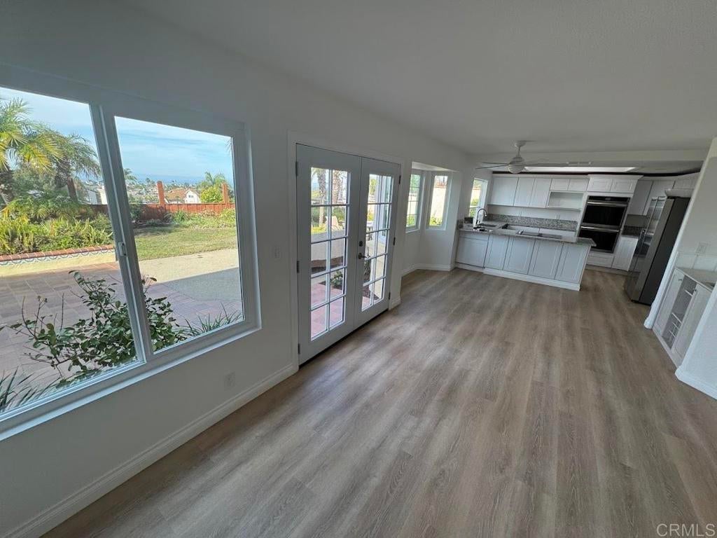 Panoramic Ocean views! This 4br. 2 and 1/2 bath is filled with natural light and open space. As soon as you open the front doors you will be met with the view as well as the light. Features a unique first-floor primary bedroom with private double French doors leading to back patio and a walk-in closet with custom built-in cabinetry. Cozy and bright fireplace in formal living area offers a classic feel while also feeling modern and fresh. 2nd story offers 3 bedrooms where one can easily be used as home-office, with breath-taking expansive ocean view. Brand new flooring throughout, neutral-shade carpet upstairs and light-wood flooring downstairs. Brand new kitchen appliances, cabinets, and countertops make this a turnkey home. Nestled in a quiet community that is in close proximity to the new FoxPoint Farms, Carlsbad Forum, Golf Course, the 5 freeway and much more.