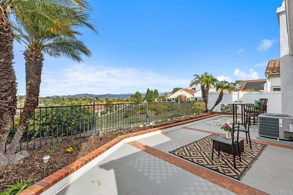 Discover this charming single-level home perfectly situated at the end of a quiet cul-de-sac in the desirable Fairways community of Lake San Marcos. Enjoy stunning panoramic views of rolling hills, mountains, and even peek-a-boo ocean and sunset vistas right from your backyard! This meticulously maintained home features a spacious open floor plan with high ceilings, newer dual-pane windows and sliding doors, plantation shutters, and stylish recessed lighting. The interior offers fresh paint, new carpet, a nice and clean look with tile flooring, and elegant stone countertops. Comfort and efficiency are ensured with a newer furnace and A/C system. A cozy gas-start fireplace, an attached two-car garage, and a long driveway complete this thoughtfully designed home. Step outside to a large private patio — the perfect place to relax and enjoy the peaceful surroundings. The Fairways community provides a heated pool, spa, and 24-hour security patrol, with HOA fees covering common area maintenance. Residents love walking throughout the neighborhood, which is beautifully maintained and tucked away from busy roads. For a minimal additional fee, residents may also join the Lake San Marcos community to enjoy even more amenities, including another pool and spa, tennis and pickleball courts, and a variety of lake activities. Conveniently located near shopping, dining, walking trails, and schools, this home perfectly blends comfort, beauty, and lifestyle in one exceptional setting.