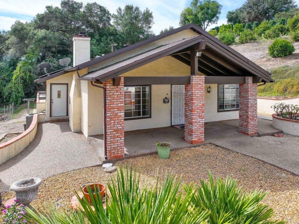 Whoa, looking for a little country?? 1.33 plus acre lot, custom 2 br/2 ba single level with ADU and 3 car garage with work area and upstairs room. Living room brick fireplace covers entire wall, dry bar passes through to DR, open kitchen with huge island has double doors to side covered patio area. Exterior access to laundry room. Detached 1 br ¾ bath ADU and oversized detached 3 car garage with large work area with upstairs bonus room /bedroom. Leased solar, seller may pay off depending on offer. Lots of hardscape, 2 large detached covered structures.