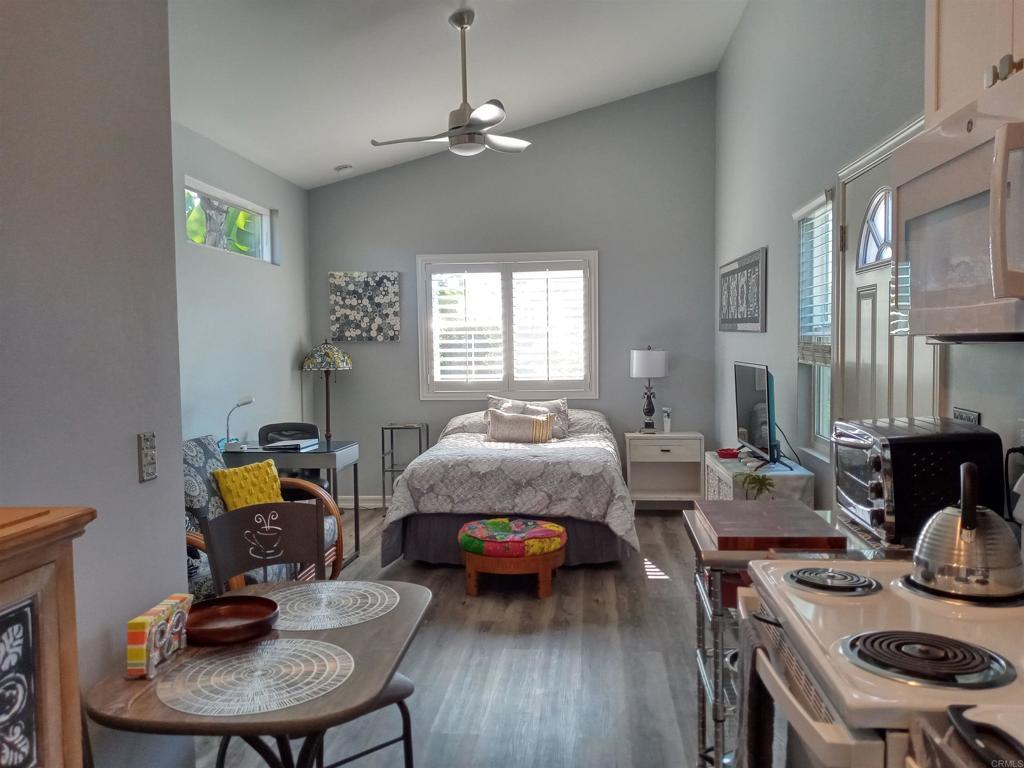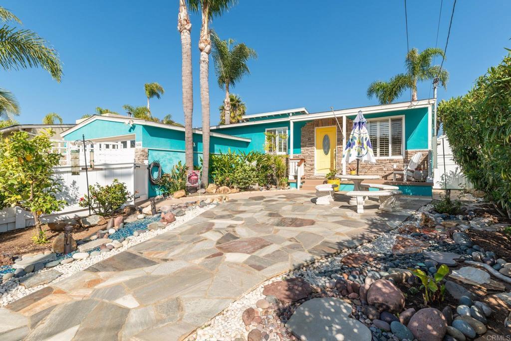 Welcome to a vibrant coastal retreat that captures the colorful spirit and laid-back charm of South Oceanside living! This cheerful property features a 3-bedroom, 2-bath main home and an added ADU, blending coastal charm with thoughtful updates to create a space that feels as fun and inviting as the neighborhood itself. The kitchen offers impressive functionality with abundant storage, granite countertops, stainless steel appliances, and a large island, making it the perfect space for cooking, gathering, and entertaining. Throughout the home, you’ll find solid oak hardwood flooring in the living room and two bedrooms, skip-trowel finished walls, and shutters on windows throughout for a timeless, beachy aesthetic. The bathrooms and entrance to the primary suite showcase stunning imported Italian tile, a true work of art that elevates the home’s distinct personality. A brand new "One Water System" whole-home water purification system was just installed ($5,000+), providing exceptional water quality throughout the home — a major value-added upgrade for comfort and health. The primary suite includes its own loft area — an ideal spot for a home office, cozy reading nook, or creative hobby space. From here, step right out into your private backyard oasis. Both slider doors are fitted with upgraded Crimsafe mesh security screen doors, allowing you to enjoy the coastal breeze in comfort and peace of mind. Outdoors, lush landscaping and tropical touches create that quintessential Oceanside vibe, complete with a built-in BBQ for effortless entertaining. Adding even more versatility, the detached ADU built in 2021 offers a modern studio layout with its own kitchen, bathroom, and separate side entrance for privacy. Perfect for rental income, guests, or extended family. Situated in the heart of South Oceanside, just one mile from the beach, you’re minutes from local surf spots, bike trails, cafés, breweries, boutiques — and close to local schools. Colorful, creative, and full of soul, this home is a true expression of Oceanside coastal living.