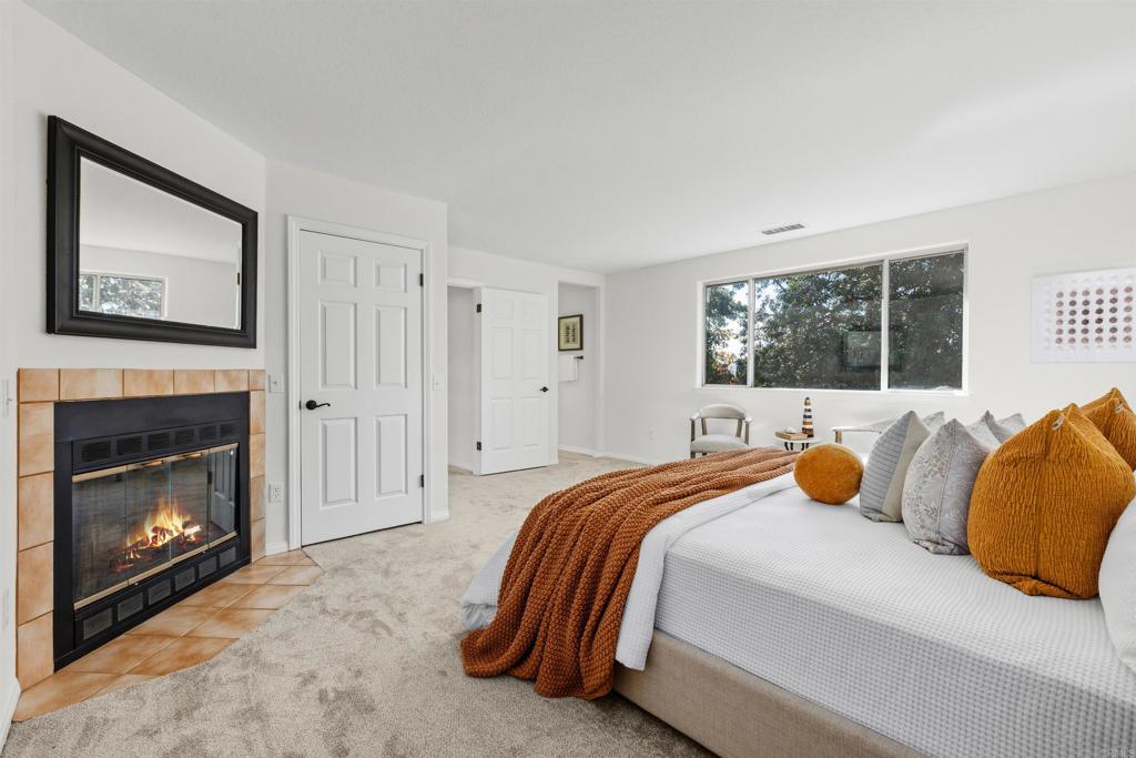 Immaculate Custom Home on Over an Acre in a Gated Setting Discover this stunning residence nestled on a private, park-like 1+ acre corner lot with mature trees and a fully fenced exterior. The open and sun-filled floor plan features a spacious living room, a cozy family room with a brick fireplace, and a formal dining area complemented by a kitchen dinette. Downstairs offers two generous bedrooms, while the expansive primary suite occupies the upper level for ultimate privacy, featuring a giant wraparound closet and fireplace. Freshly painted interiors and brand-new carpet make this home move-in ready and waiting for your personal touch. Enjoy exceptional outdoor living with multiple spaces designed for gatherings, entertaining, and relaxing under the California sky. This property combines comfort, elegance, and versatility—perfect for creating your dream lifestyle.