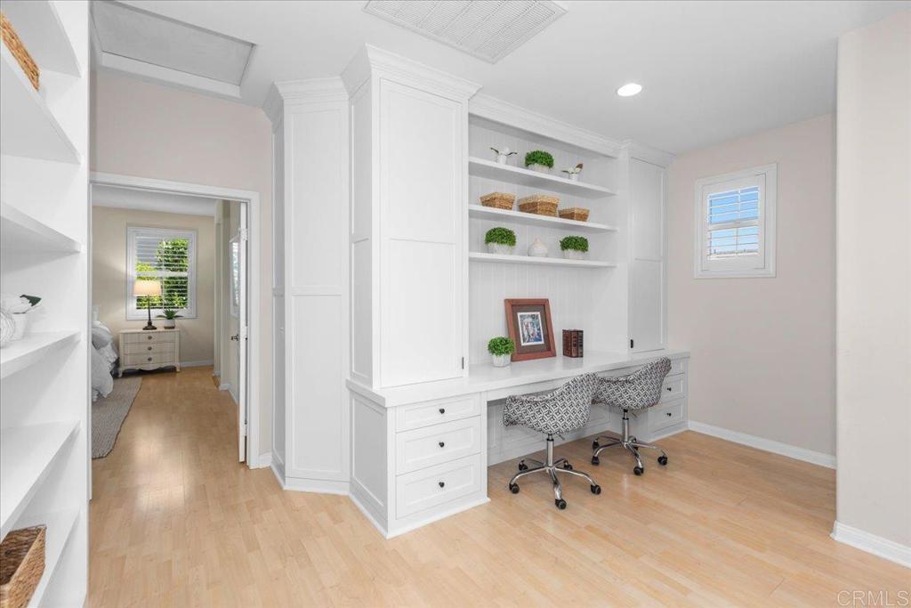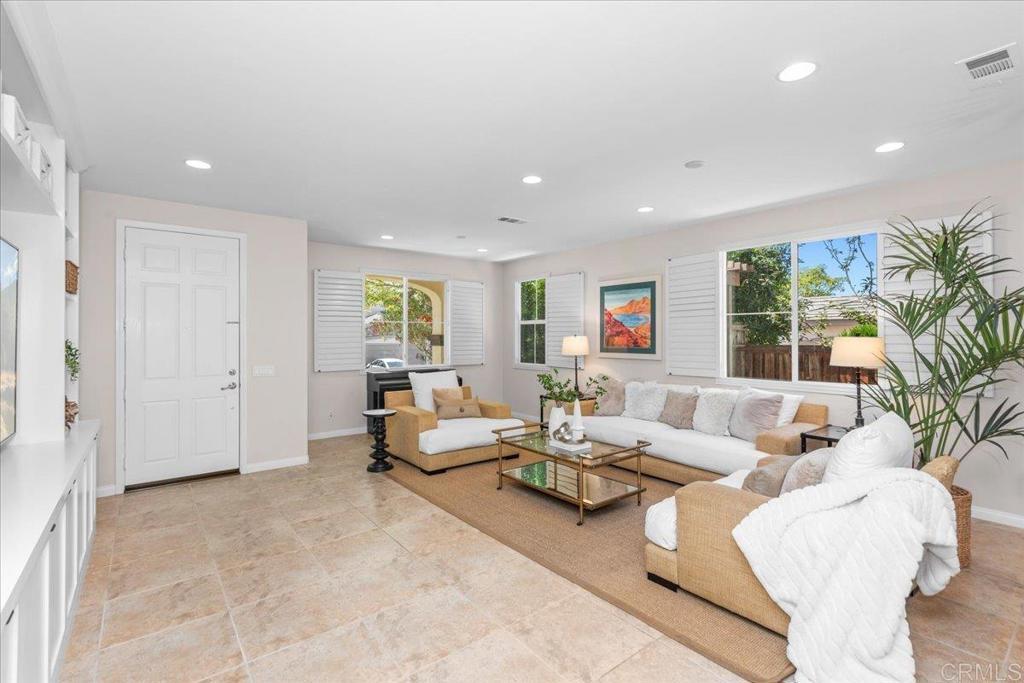 Desirable Terraza Home in San Elijo Hills. Gorgeous curb appeal, beautifully upgraded and eco-conscious with owned solar, this spacious residence offers 3 bedrooms plus a dedicated office area and 2.5 bathrooms, 3 car garage - built in 2010 and boasting 2,182 Est. SqFt. The gourmet kitchen features granite countertops, stainless steel appliances, and a center island opening to an inviting family room with fireplace - perfect for everyday living and entertaining. The dining and living room combination showcases elegant tile flooring and custom built-in cabinetry. Upstairs, enjoy laminate wood flooring throughout, including the office/desk area, with tile in the bathrooms and laundry room. The expansive primary suite includes walk-in closet and a tranquil bath with soaking tub, dual sinks and walk-in shower. Custom built-in cabinetry is thoughtfully integrated throughout the home. Additional highlights include ceiling fans, air conditioning, tankless water heater and fully paid solar system for energy efficiency. Set on a private, pool-sized lot, the outdoor space features a large patio, spacious lawn, raised play area, and mature landscaping - ideal for entertaining, relaxing and play. The tandem 3-car garage includes overhead storage racks for added utility. Washer/Dryer/Fridge and Solar System are included. LOW MELLO ROOS and HOA! Located within the boundaries of the highly desirable Double Peak School. The San Elijo Hills community features: - Top-rated schools - Ball parks & soccer field - Picnic areas & playgrounds - Dog park & community center - Town center with stores and shops, restaurants and eateries, 18 miles of scenic trails & a 19-acre park - Over 1,000 acres of open space. Enjoy the Southern California Coastal lifestyle, a short drive to the beaches and everything San Diego County has to offer. Seller to select services. Mello-Roos fees are estimated. All MLS and marketing information is approximate and not guaranteed.