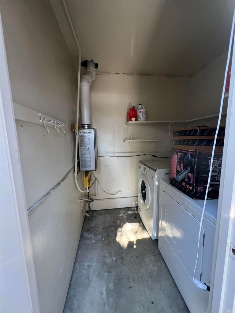 Location, location, location! When choosing a condo, remember this: you can always change flooring and paint, but you can’t change where the unit sits. This home is ideally located just steps from the community pool and convenient visitor parking (a huge plus—something you may not think about now but absolutely will once guests come over!). As an end unit, it also enjoys extra windows that bring in abundant natural light that interior units lack. Double doors open to a spacious entry with vaulted ceilings. The first floor offers a bedroom and a full bathroom, along with a large, open living room that connects to your private patio. The patio provides direct access to two carport parking spaces plus extra overhead storage. Upstairs, you’ll find a large secondary bedroom and a generous primary bedroom—both featuring private decks. All this, and you’re close to SeaWorld and, well… just about everything!