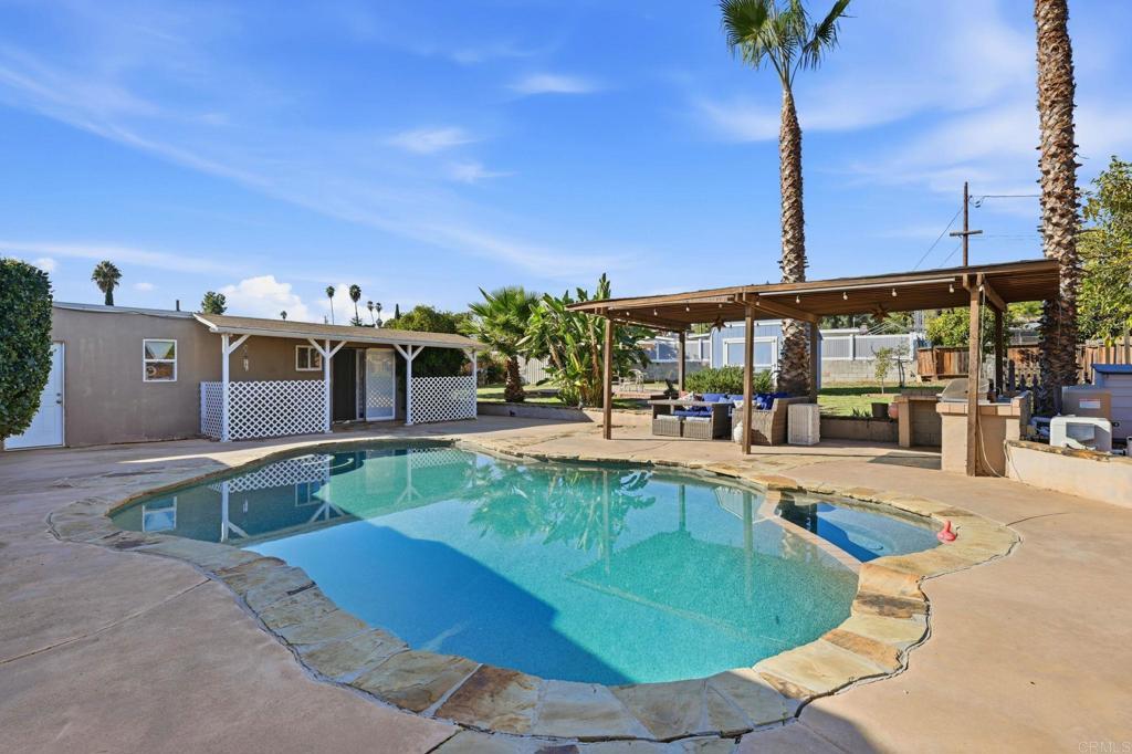 Charming cottage compound on an oversized, gated lot with sparkling pool and a versatile detached unit. The main home is a quaint 2-bedroom, 1-bath bungalow built in 1949 with approx 927 sq ft. The separate detached 2-bedroom, 1-bath unit offers approx. 600 sq ft of additional space, ideal for multi-generational living, guests, a home office, a studio, or flexible use. Easily add a small kitchen and rent it out! The yard feels like your own private retreat, with a beautiful heated pool, outdoor kitchen, fire pit, and entertaining area, two storage sheds, and room to spread out. The fully fenced, gated property offers ample off-street parking for vehicles, toys, or work vehicles. Mature landscaping includes multiple fruit trees, including pomegranate, orange, fig, and lime, plus plenty of usable yard space on this approx. 0.35 acre lot. Solar helps keep utility costs down. Conveniently located near shopping, schools, parks, and restaurants with easy access to local amenities and commuter routes, this is a rare opportunity to own a versatile property with great indoor/outdoor living.