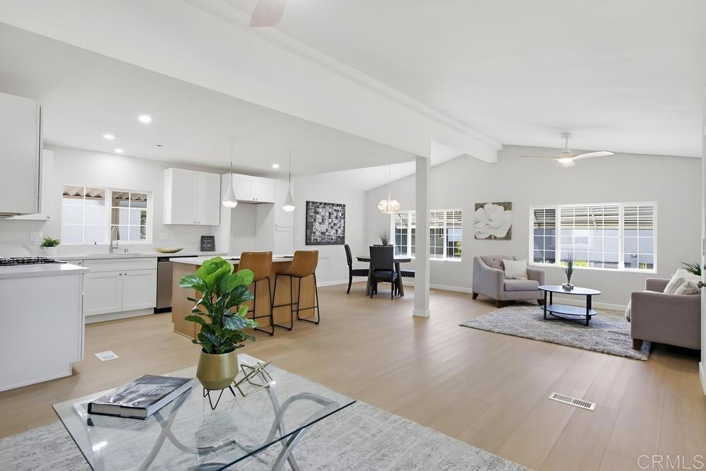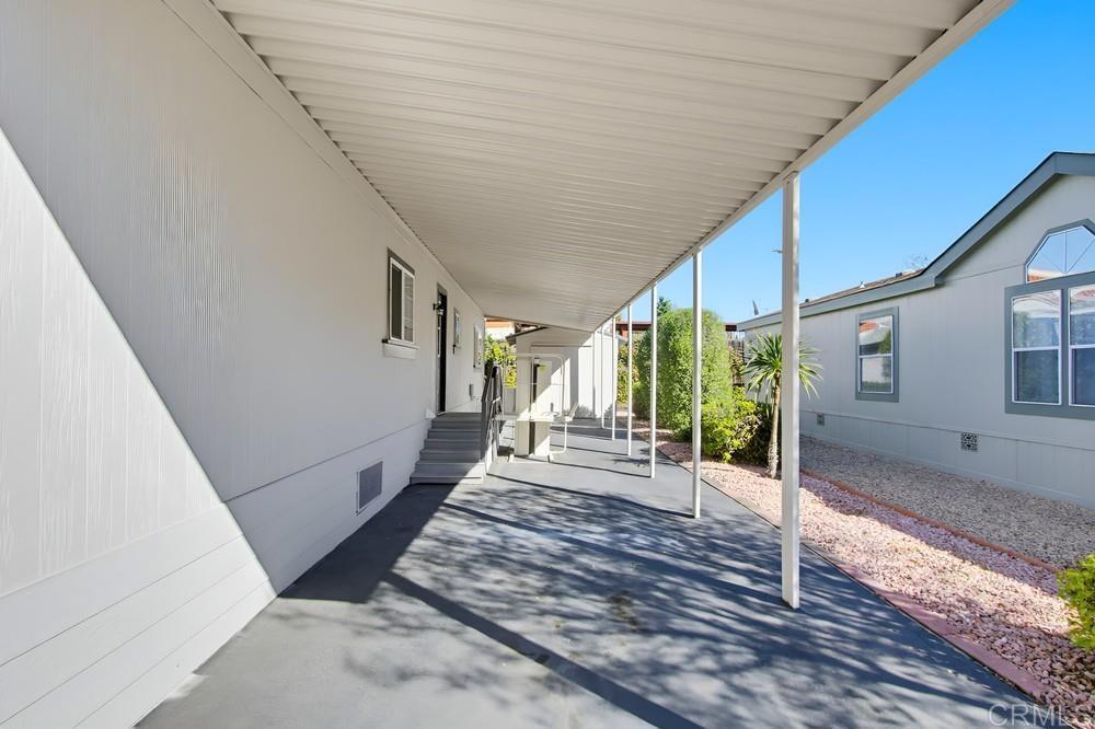 Turnkey two bedroom and two bath house in Rancho Escondido. The open floor plan and vaulted ceilings make this home feel very spacious. The kitchen has wonderful two tone cabinets, quartz countertops, a center island, a single basin sink, and stainless steel appliances. The home has been drywalled throughout as well as plank vinyl flooring in the main living areas. The primary bathroom has a dual vanity with quartz counter tops and a beautiful walk-in tiled shower. A new HVAC system and vinyl dual-pane windows will keep this home comfortable. The home has a new roof. There is a shed to store your extra items. The home has a 433A foundation. Rancho Escondido is a 5 star 55+ gated resident owned community in North County with a very active social community, a beautiful clubhouse, two pools, and a spa. Own your own land & home! No space rent! The HOA is only $350 and includes water, sewer, trash, basic cable, and common grounds.