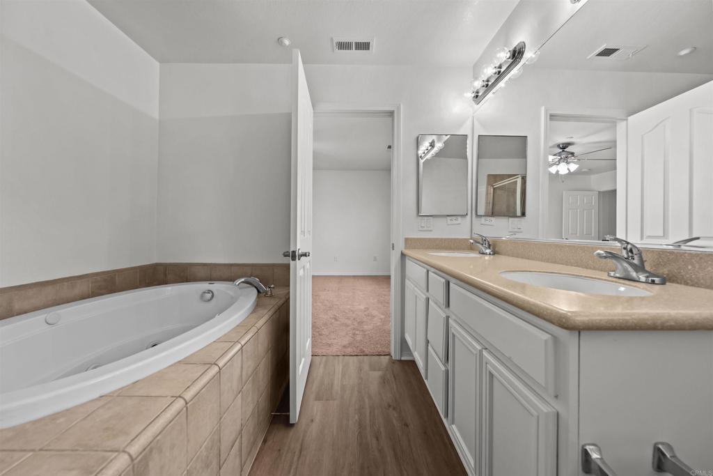 Move-in ready, this turnkey townhome offers a bright, open layout and a prime location near Temecula Valley Wine Country. New hard-surface flooring in the living room and bathrooms, new carpet on the second level, fresh paint and new blinds throughout, and new ceiling fans in nearly every room. An open-concept main living space overlooks the dining area and kitchen with a custom stone fireplace and direct access to the private outdoor patio. The kitchen boasts stainless appliances, including a new refrigerator, granite counters, tile backsplash, abundant cabinetry, walk-in pantry, and a center island with breakfast bar. The primary suite features a large walk-in closet with custom organizers and an ensuite bathroom with dual vanity, jetted soaking tub, and separate walk-in shower. Two additional bedrooms, full bath, and convenient upstairs laundry room complete the second level. An attached two-car garage provides direct access and additional storage space. Community amenities include a pool & spa, playground, and Sheffield Park is just a short walk away. Located within the Temecula Valley Unified School District and close to shopping, dining, and local wineries. Enjoy the best of Southern California living with nearby hiking trails, fishing, lakes, conservation areas, hot springs, and more.
