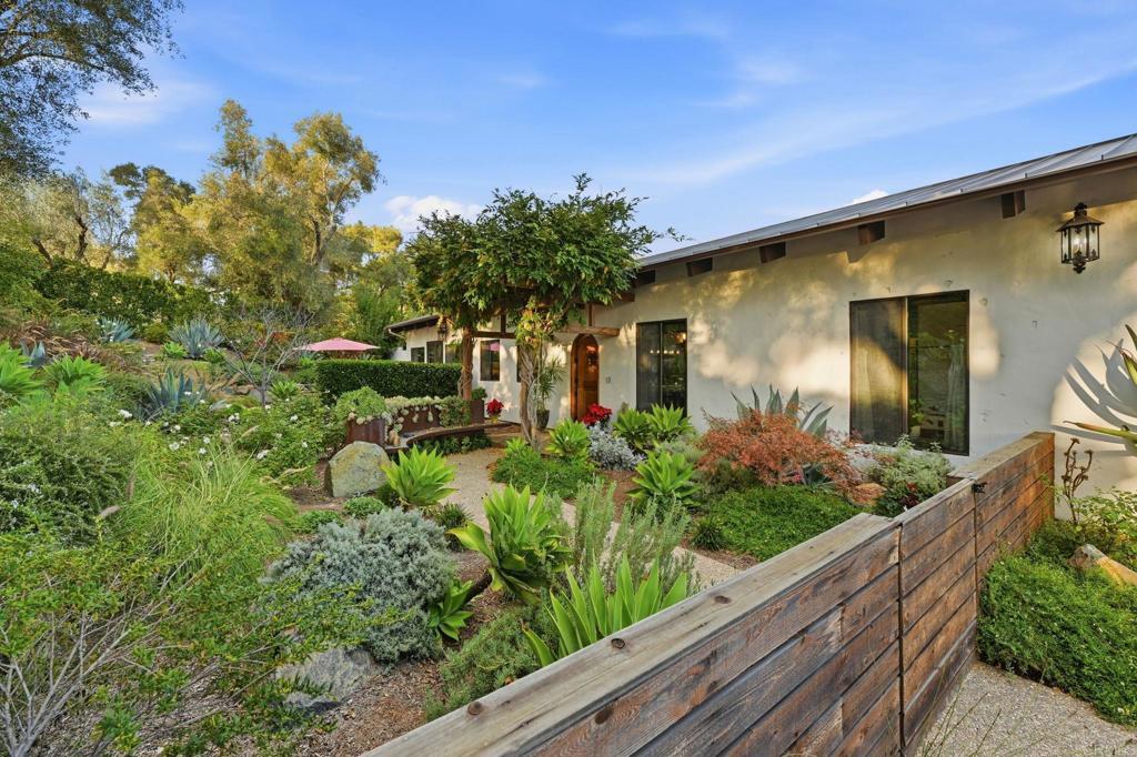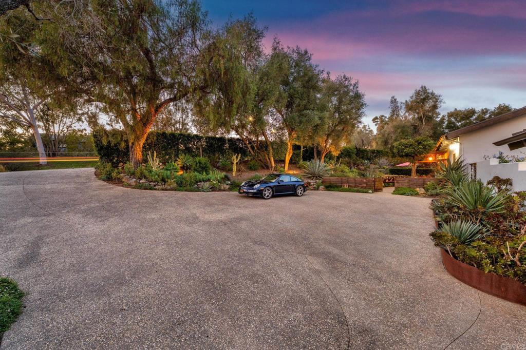 Welcome to 1111 Palomino Road, where luxury, nature, and timeless design come together to create one of Fallbrook’s most enchanting estate retreats. Set atop gently rolling grounds and surrounded by resort-style amenities, this farmhouse-inspired sanctuary immediately captivates with warm elegance and unforgettable charm. From the moment you arrive, you’re greeted by artful landscaping, tranquil water features, and a sense of peaceful seclusion that feels worlds away—yet every inch of the property has been thoughtfully crafted for modern living, effortless comfort, and unforgettable moments, and was proudly awarded 2025 FALLBROOK GARDEN OF THE YEAR. Discover the magic of this beautifully crafted estate that captures the essence of refined country living. Warm, inviting, and effortlessly elegant, the home blends timeless design with sophisticated upgrades to create a space that feels both inspiring and grounding. Smooth stucco, custom corten steel accents, and professionally maintained landscaping with uplighting offer a striking welcome, immediately setting the tone for the craftsmanship found throughout. A handcrafted Mission-style Dutch door opens to a bright interior where wide porcelain plank flooring and recessed lighting highlight an open, airy layout. Modern convenience meets rustic charm with a fully integrated smart home system controlled via cell phone and Bluetooth, dual AC units, and a whole-house generator. Each bedroom features sliding-door access to the outdoors, enhancing the seamless indoor-outdoor connection. The kitchen stands as a true centerpiece—featuring expansive quartz counters, a hammered copper farmhouse sink, premium shaker cabinetry, generous prep space including a pot filler, stainless steel appliances, and custom lighting adjustable to your needs. From here, collapsible bi-fold doors open wide to blur the boundary between indoors and out, instantly expanding your living space into a breathtaking outdoor oasis. The resort-style grounds are a world of their own. A built-in outdoor kitchen with grill, sink, and refrigerator, two fireplace features, and three serene water elements create the perfect backdrop for gatherings. At the heart of the property lies a spectacular infinity pool with a beach-style entrance and spa, surrounded by Cameron flagstone and enveloped in treetop views. An electric awning shades the back patio, while in-ground Bluetooth speakers elevate the ambiance. Nature enthusiasts will love the expansive edible garden framed by custom Corten steel planters and an orchard offering a variety of fruit trees—including fig, peach, nectarine, lemon, grapefruit, navel orange, lime, white peach, apple, loquat, pomegranate, and Fuji apple—supported by a property-wide drip irrigation system. A productive chicken coop yields 4–5 eggs daily, and a dedicated dog run with automatic watering, along with a life-sized children’s dollhouse/playroom and swing set, add thoughtful touches for all. Beyond the cultivated spaces, the backyard’s open area offers room for oversized RV parking, additional structures, an ADU, and even future subdivision—providing outstanding flexibility. Practical luxury continues with an owned solar system, EV charging in the garage, and a long-lasting standing-seam steel roof. Every corner of this exceptional property radiates charm, intention, and craftsmanship. Beautiful, functional, and truly unforgettable, 1111 Palomino Road is more than a home—it’s a lifestyle, a sanctuary, and a rare Fallbrook treasure you’ll never want to leave.
