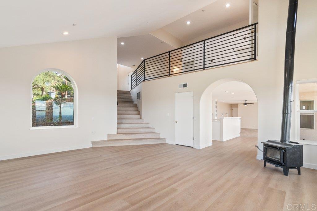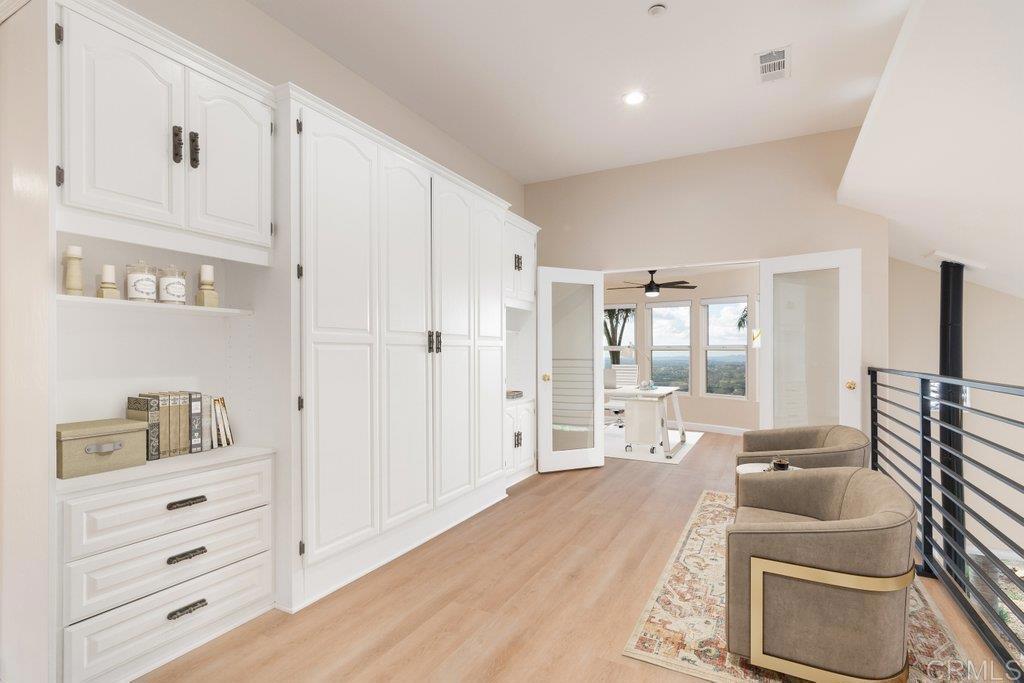 • Interior FeaturesCeiling Fan(s), High Ceilings, Recessed Lighting, Bedroom on Main Level, Main Level Primary, Primary Suite, Walk-In Pantry, Walk-In Closet(s), Balcony, Breakfast Area, Pantry, Storage, Unfurnished, Workshop